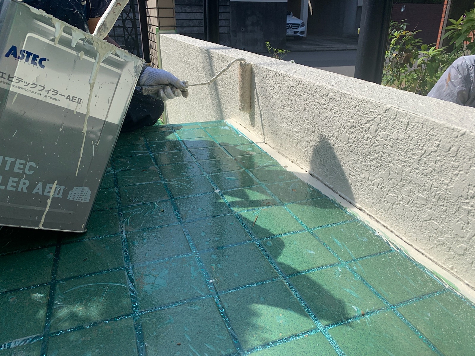 下塗りです。 土台部分となる下塗りは、塗装において重要 な役割を担っています。