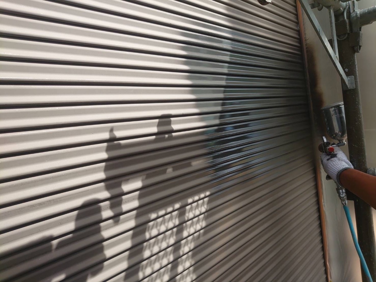 上塗りです。超低汚染性・超耐候性・遮熱性・遮熱保持性を 兼ね備えた塗料「超低汚染プラチナリファイン2 000MF-IR」で施工しました。