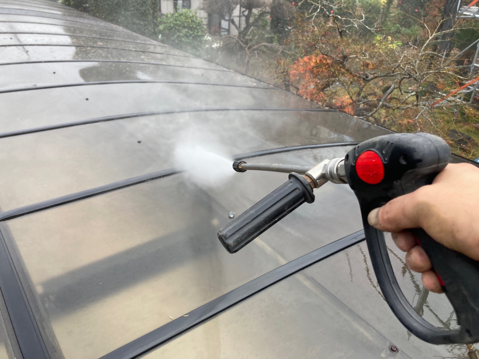 塗料と建材の密着を強くするために、外壁や屋 根に付着したホコリ・コケ・汚れなどを隅々ま で洗浄します。