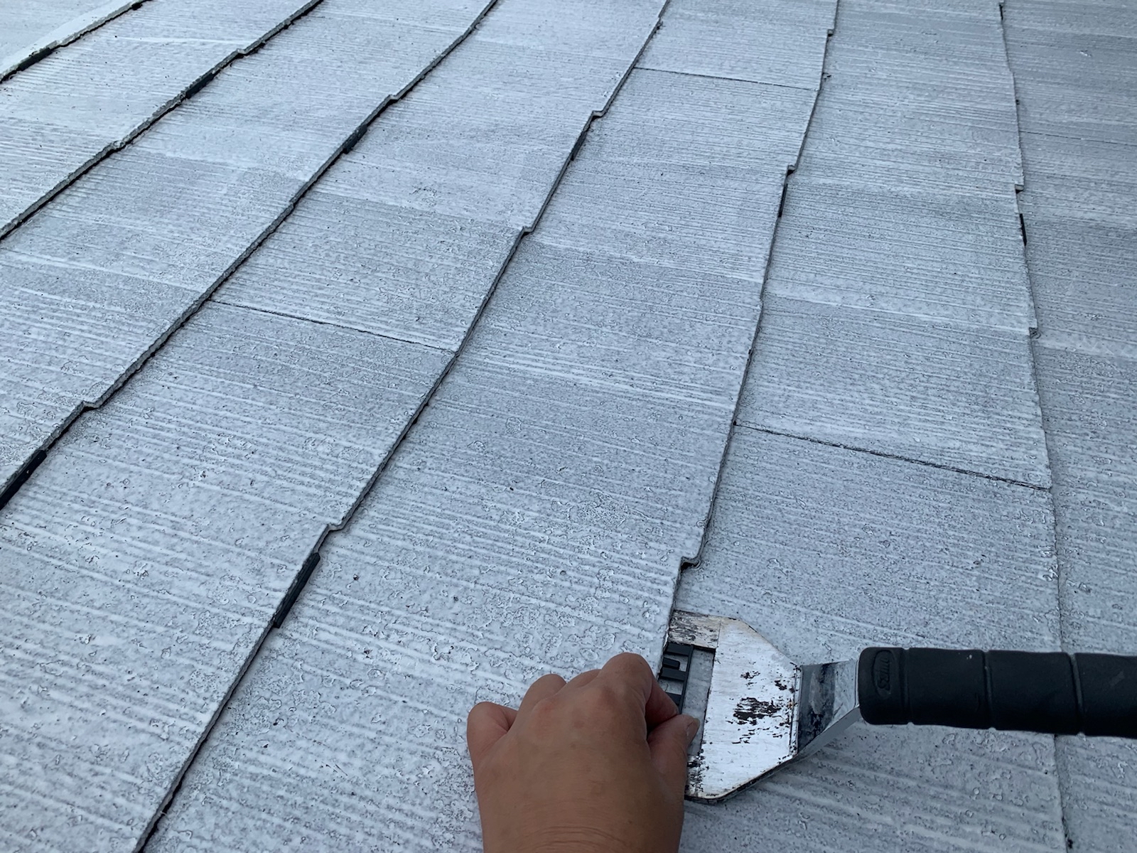 この作業をしないと、屋根の縁が塗料でくっついて、屋根に降った雨水が正常に流れていかず内部に留まり、雨漏りする可能性があります。