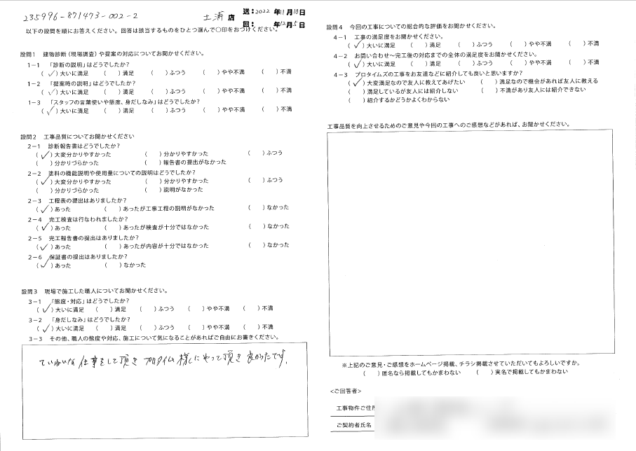 丁寧な仕事をして頂き、プロタイムズ様にやって頂き良かったです。
