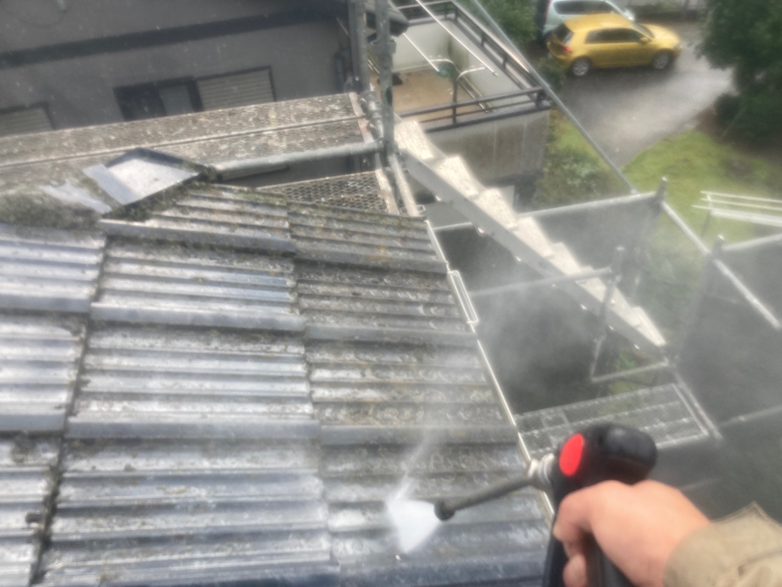 塗料と建材の密着を強くするために、外壁や屋根 に付着したホコリ・コケ・汚れなどを隅々まで洗 浄します。