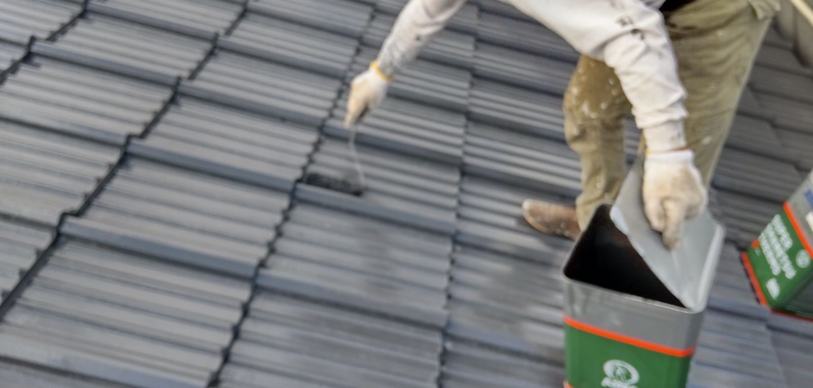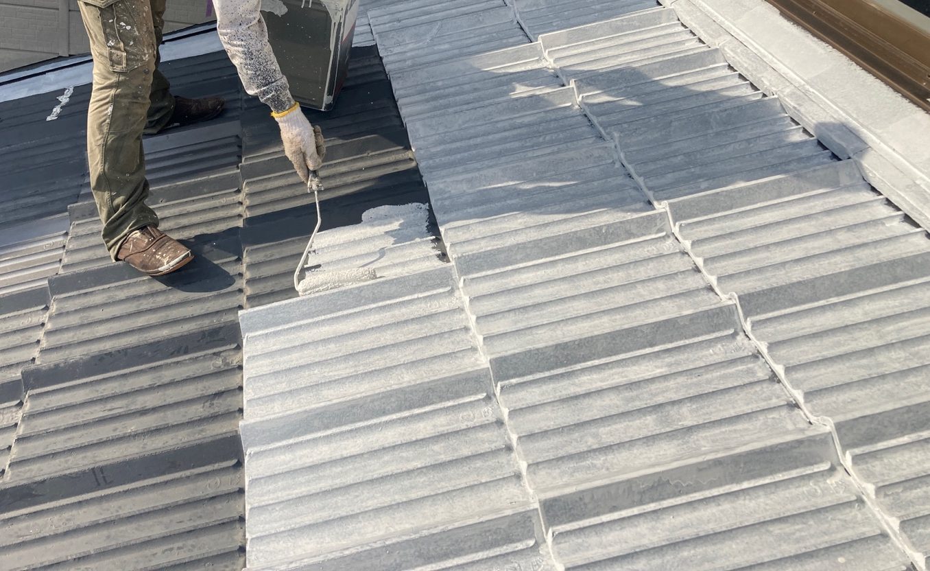 4Fフッ素の優れた耐候性を有し、屋根の色彩・光 沢を長期間保つ遮熱塗料「スーパーシャネツサー モF」で施工しました。