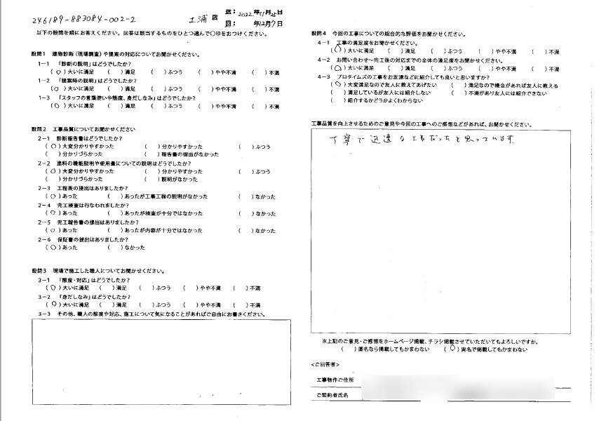 丁寧で迅速な工事だったと思います。