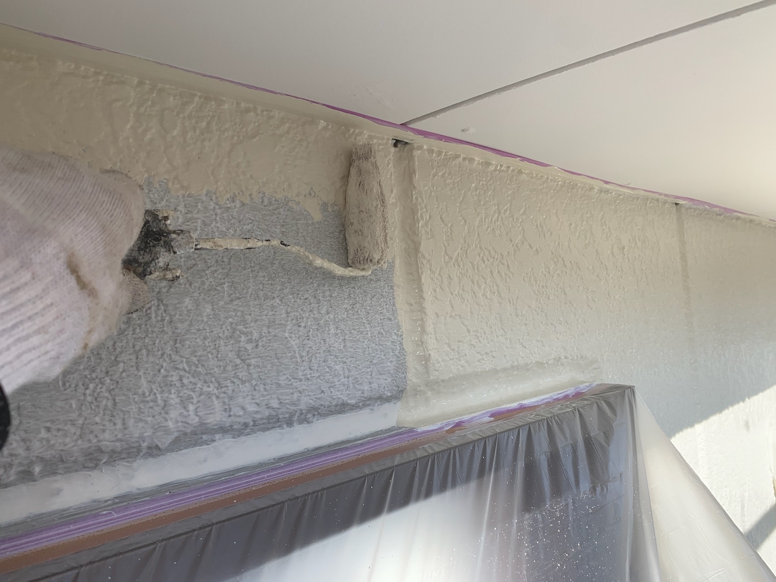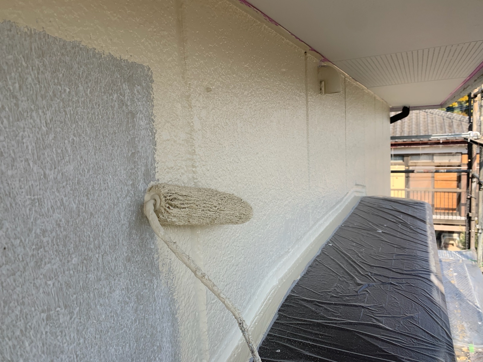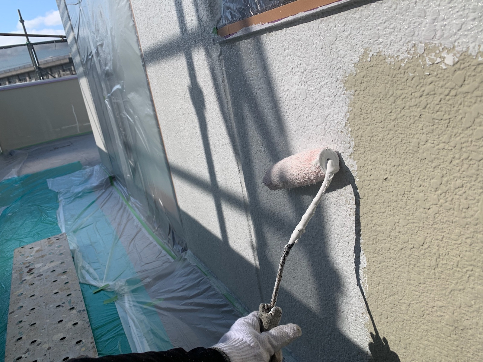 下塗りには、表面の凹凸をならしたり、この後の中塗り、上塗りの定着を助ける役割があります。