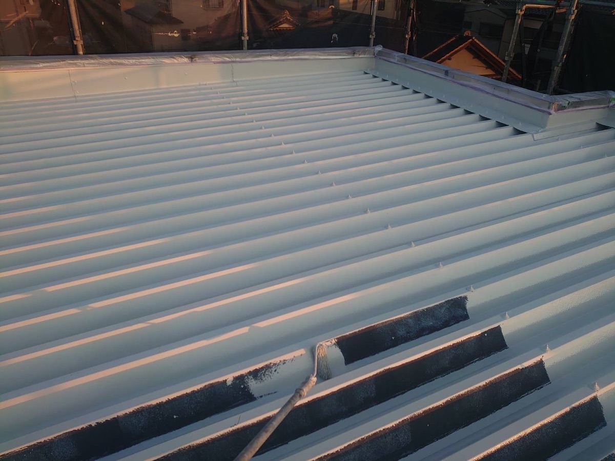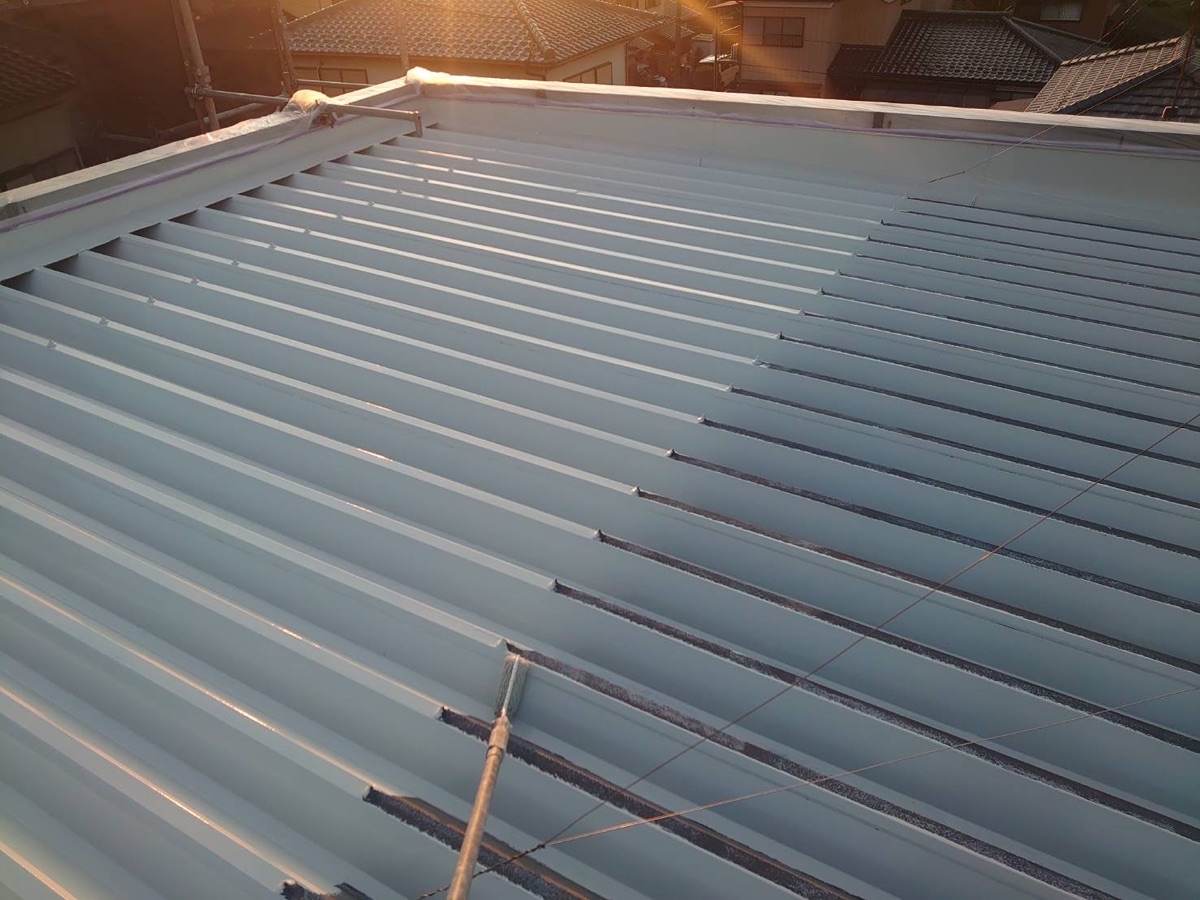 紫外線に耐久のある特殊シリコン顔料を含有し高い耐候性の遮熱塗料「スーパーシャネツサーモSi」で施工しました。