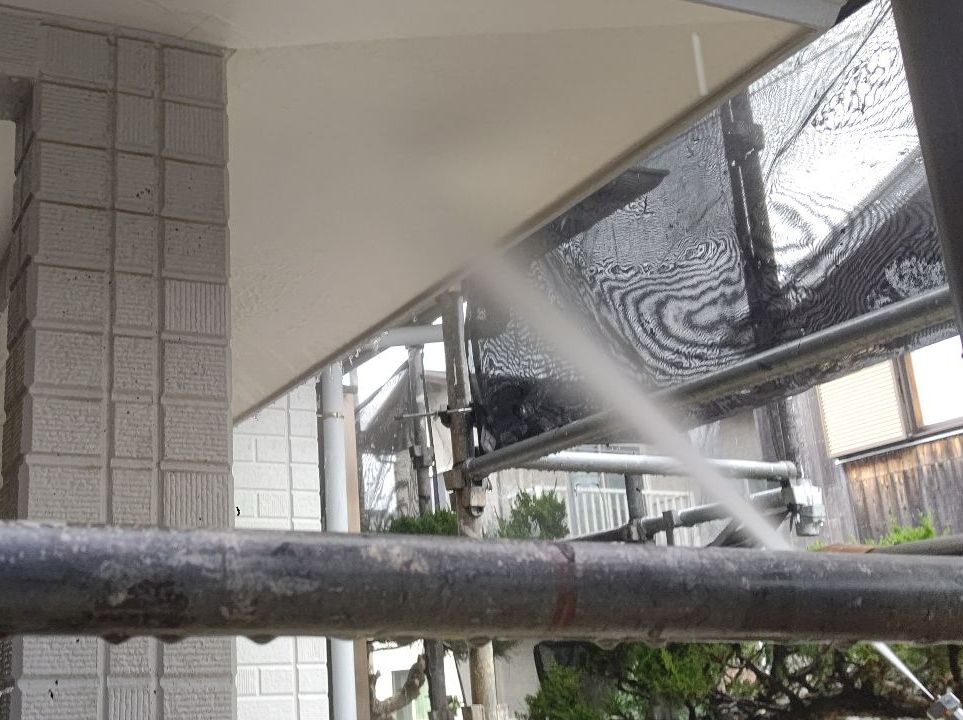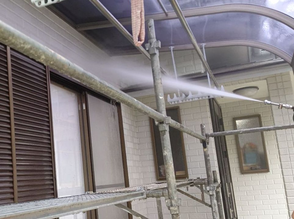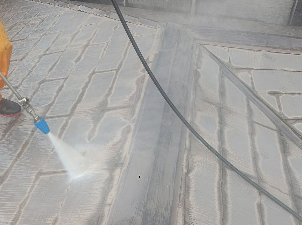 塗料と建材の密着を強くするために外壁や屋根に付着した埃・苔・汚れなどを隅々まで洗浄します。
