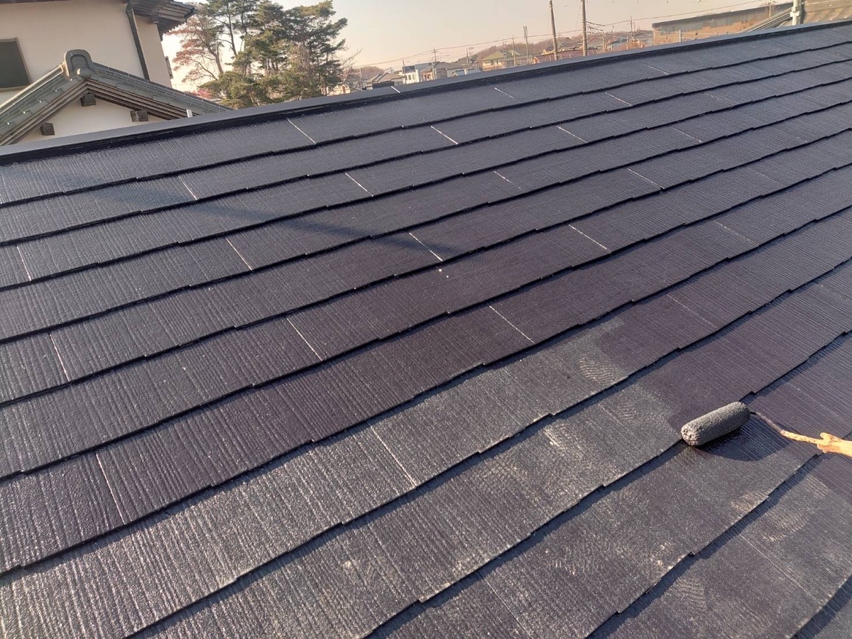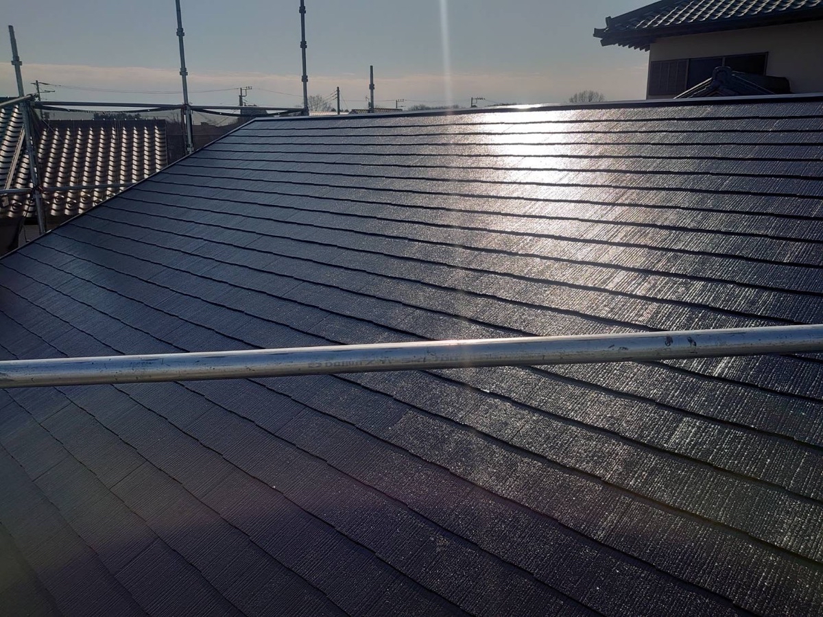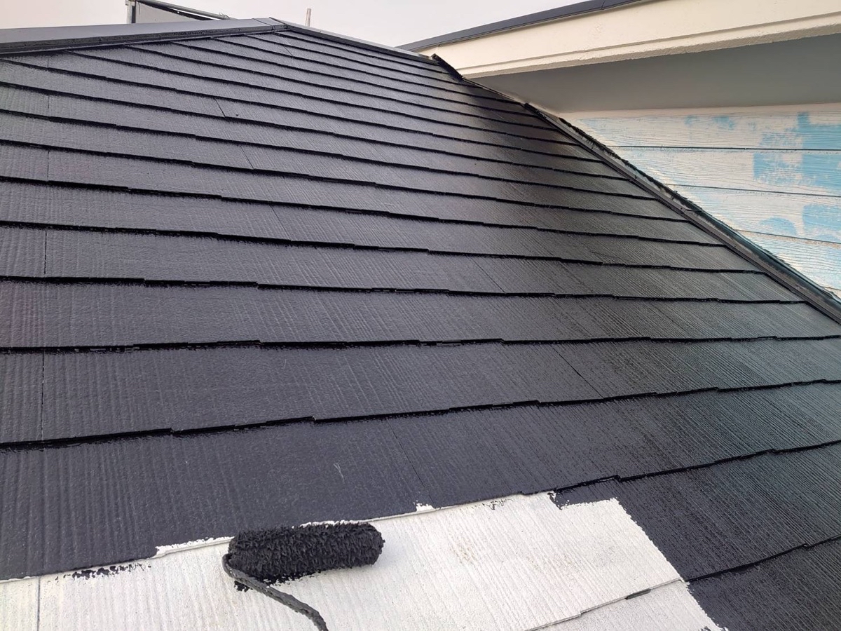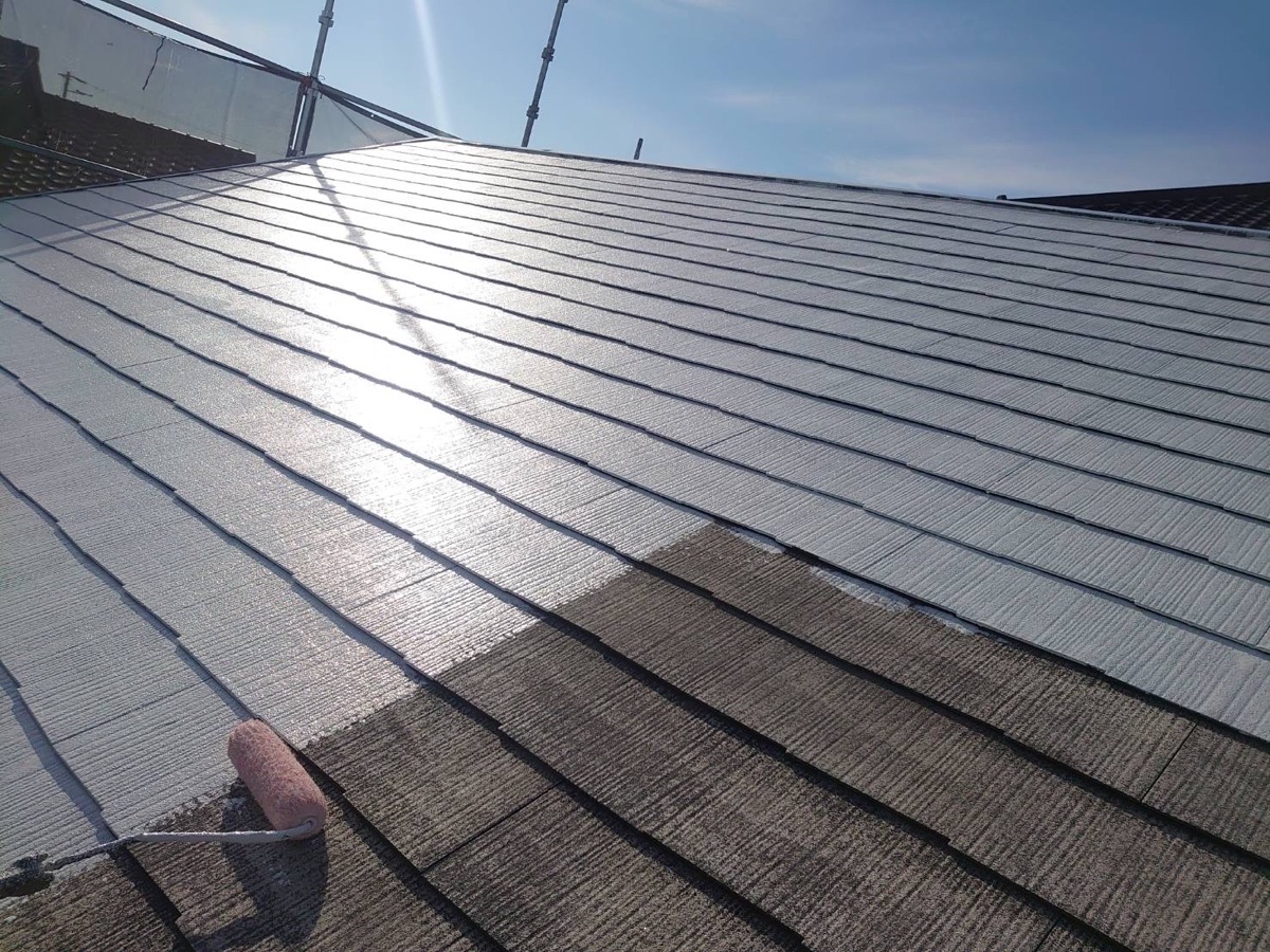 4Fフッ素の優れた耐候性を有し、屋根の色彩・光沢を長期間保つ遮熱塗料「スーパーシャネツサーモF」で施工しました。