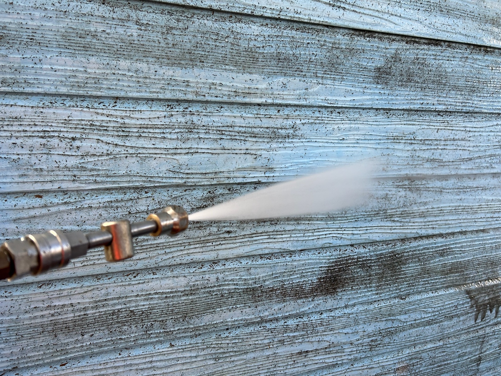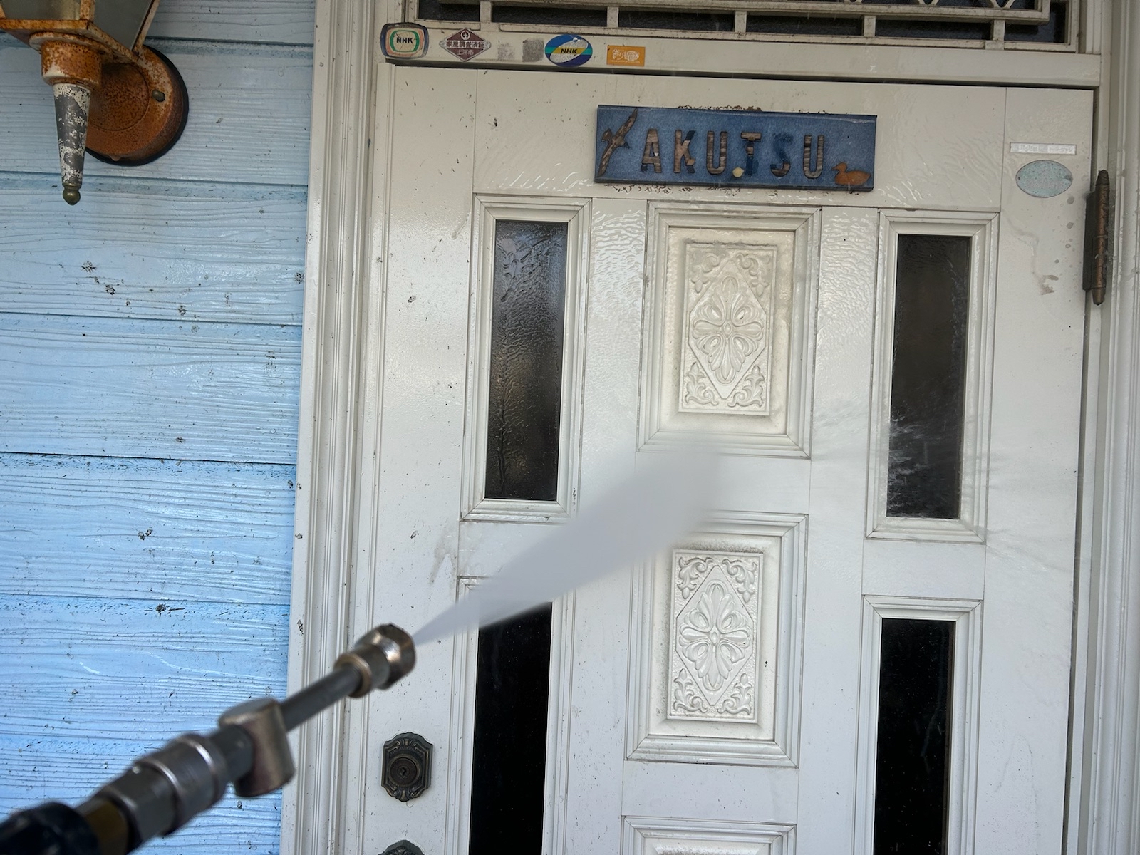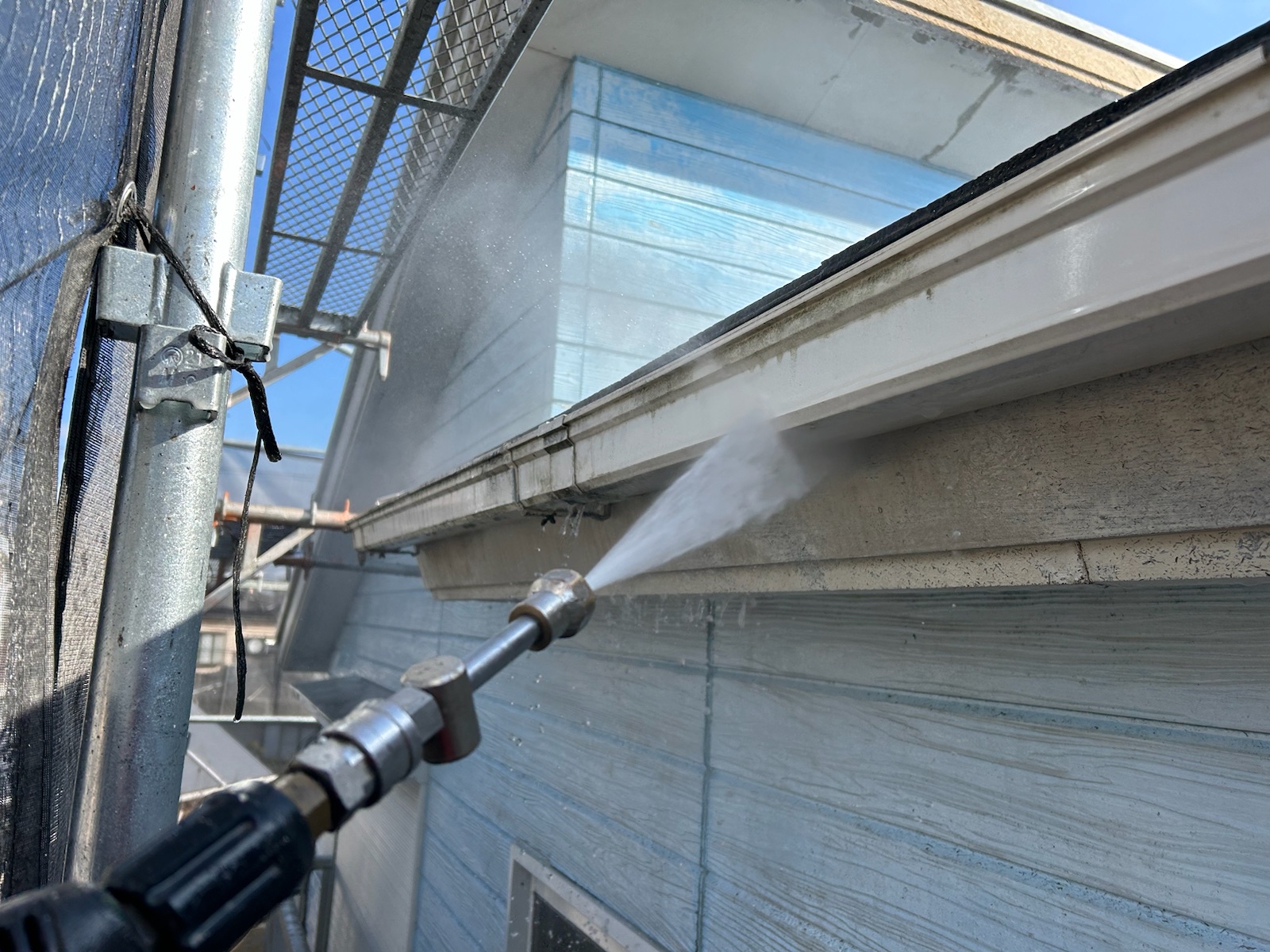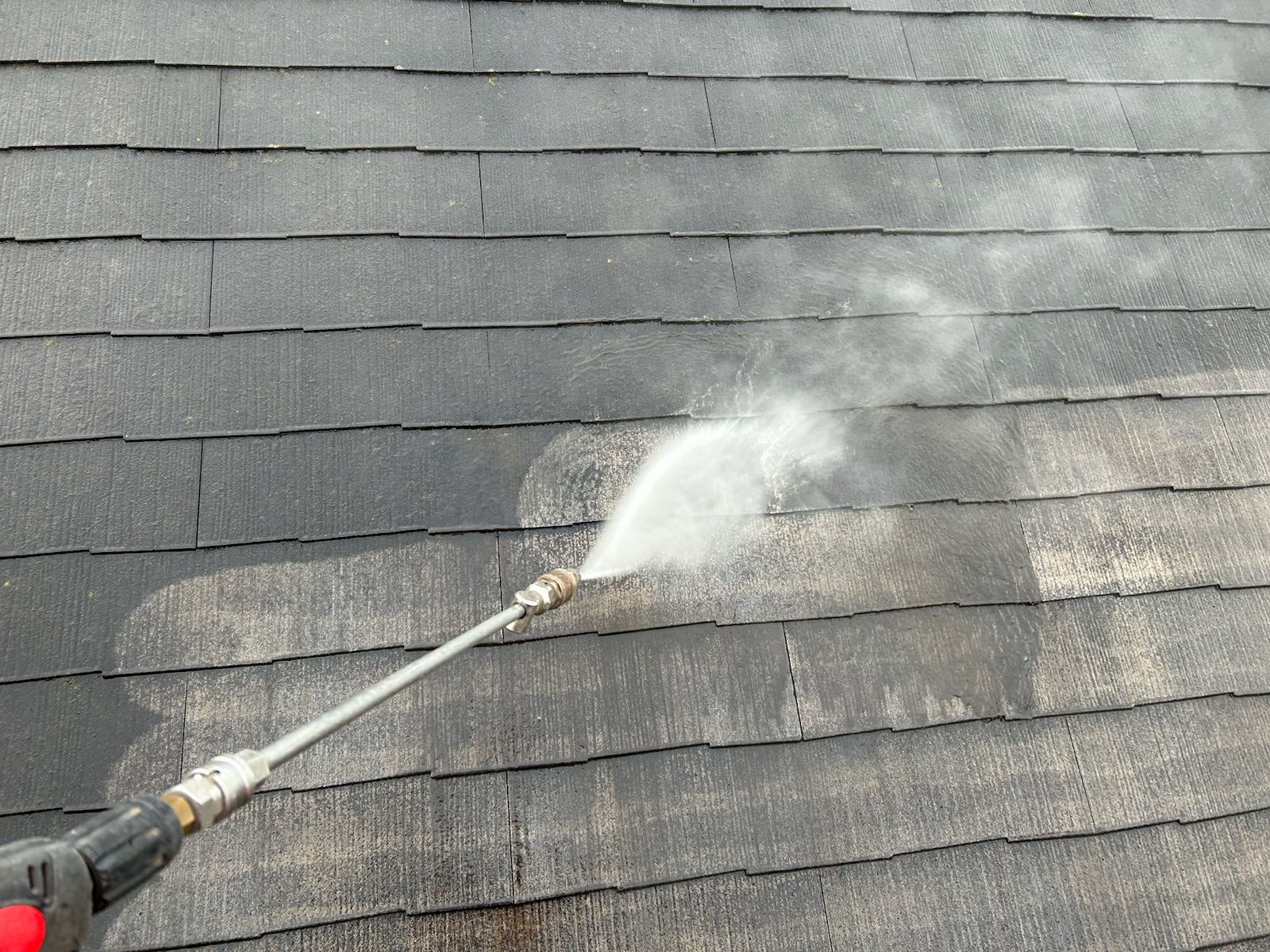 塗料と建材の密着を強くするために外壁や屋根に付着した埃・苔・汚れなどを隅々まで洗浄します。