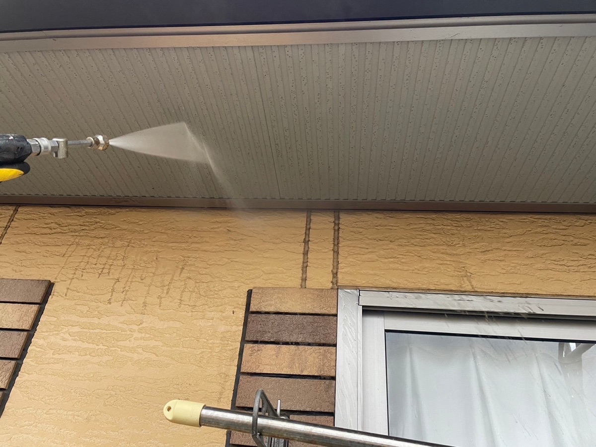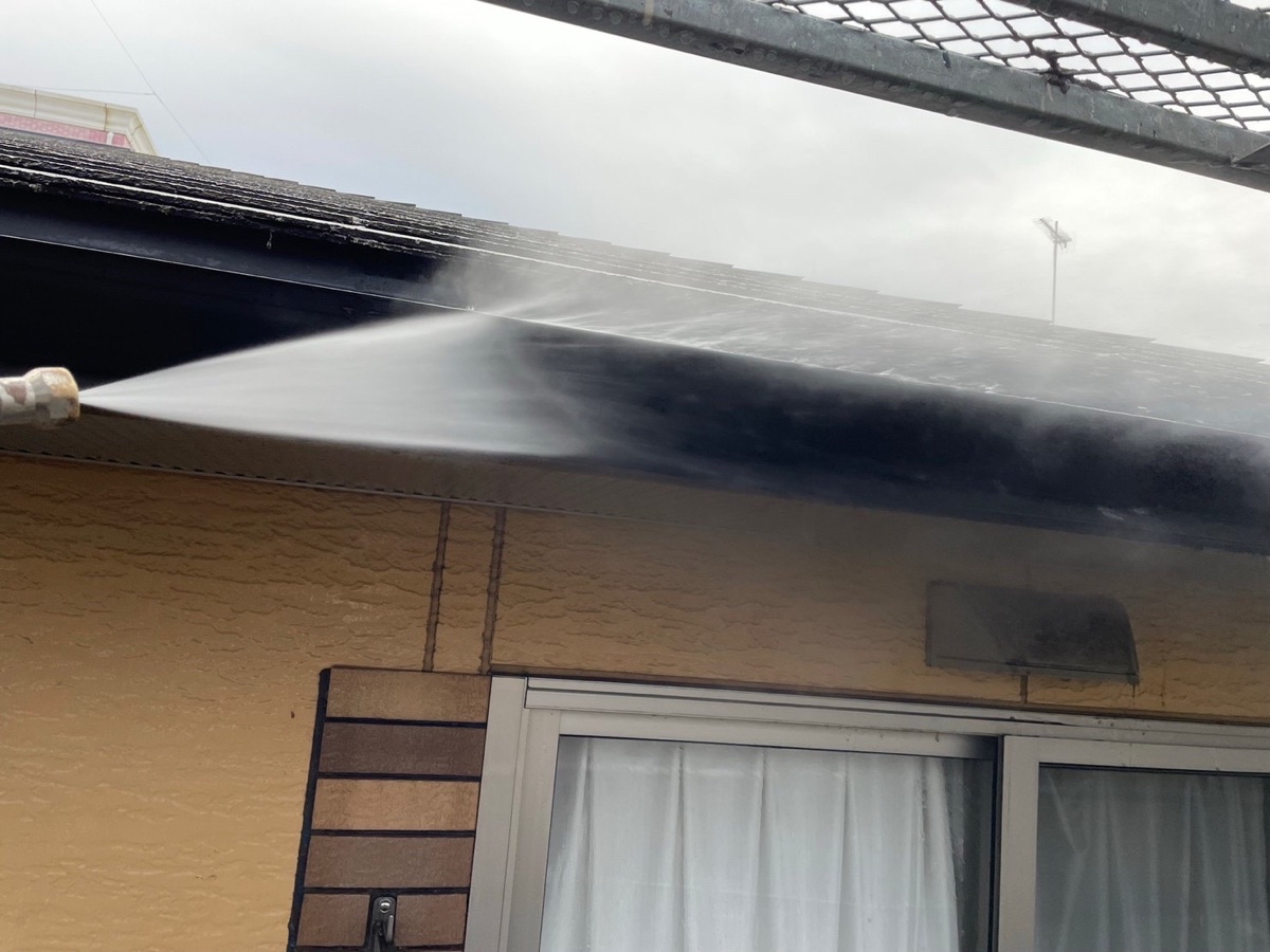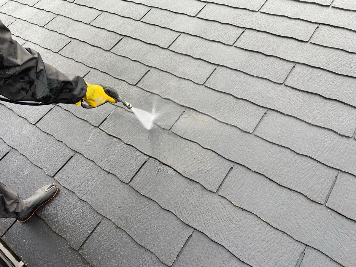 塗料と建材の密着を強くするために外壁や屋根に付着した埃・苔・汚れなどを隅々まで洗浄します。