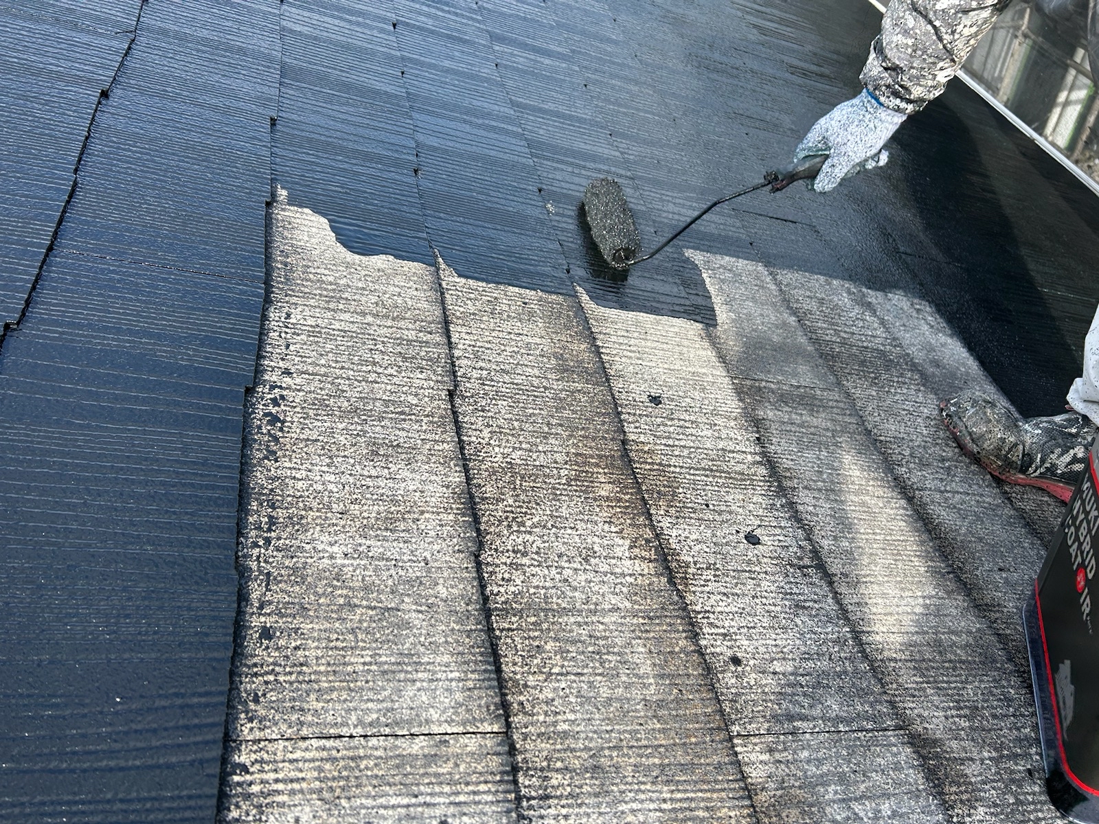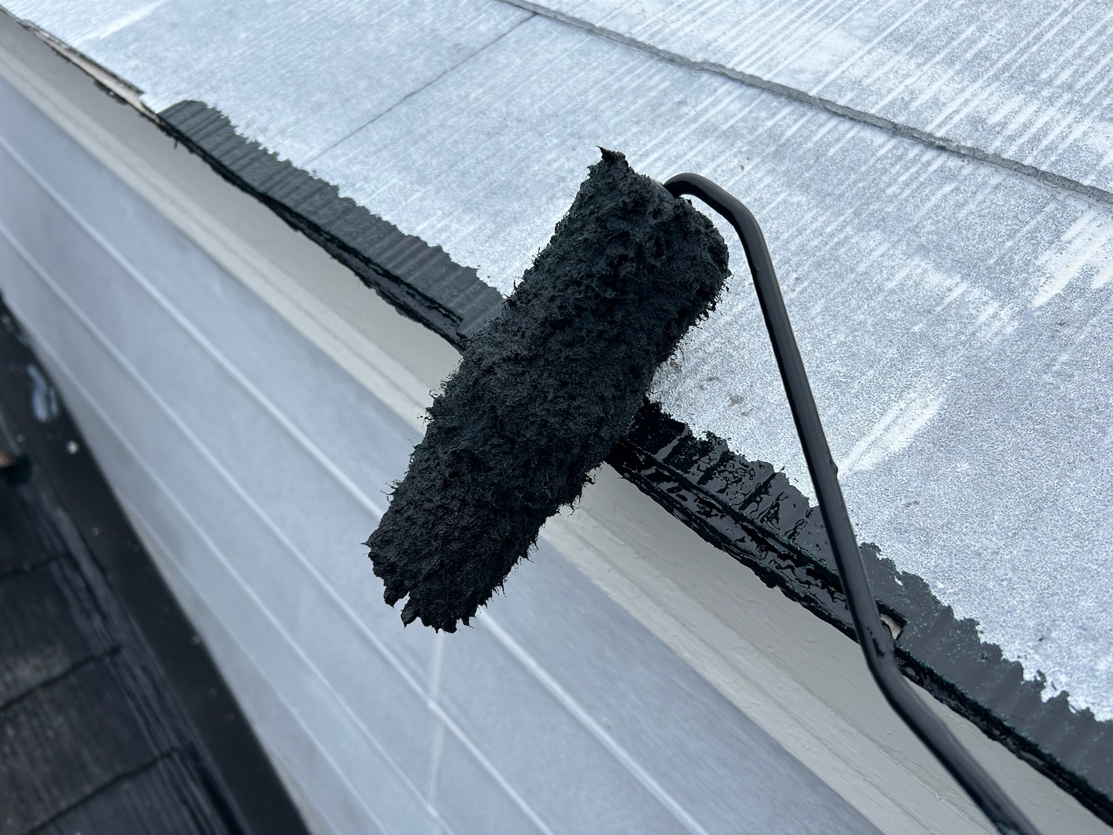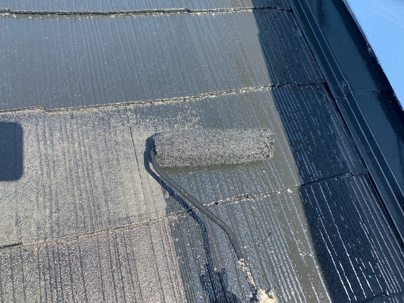 この作業をしないと、屋根の縁が塗料でくっついて、屋根に降った雨水が正常に流れていかず内部に留まり、雨漏りする可能性があります。