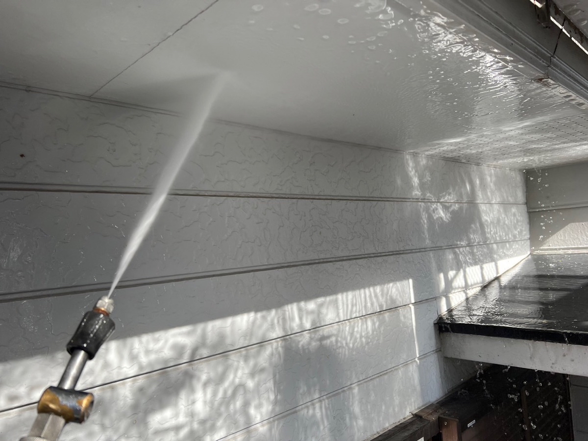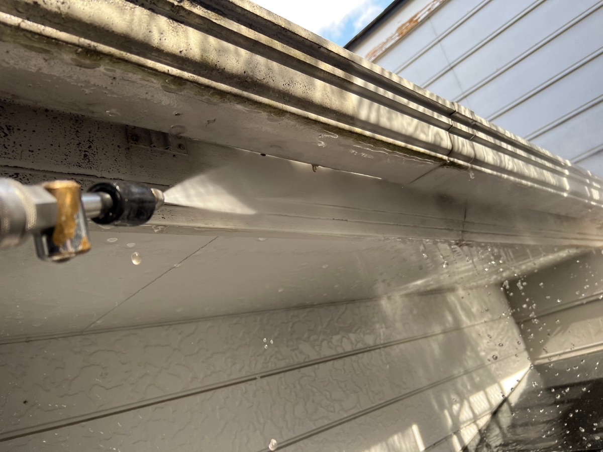 塗料と建材の密着を強くするために外壁や屋根に付着した埃・苔・汚れなどを隅々まで洗浄します。