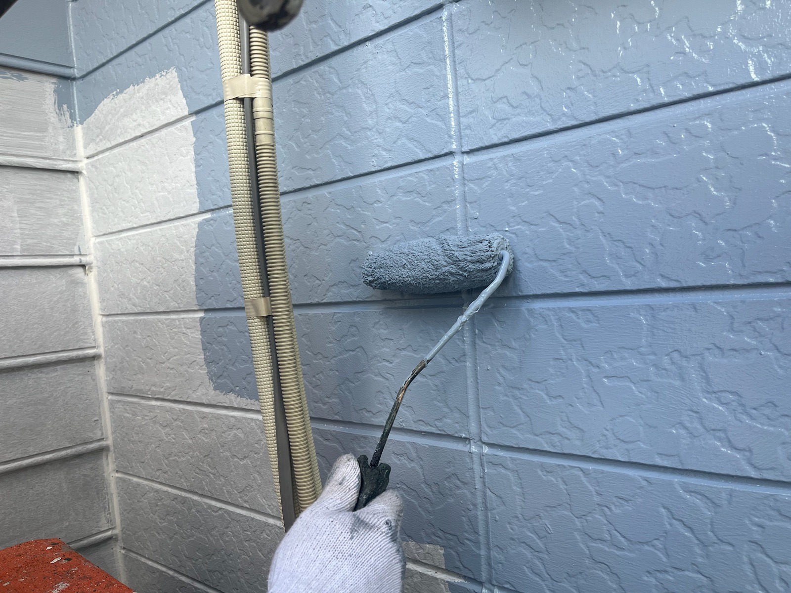 下塗り。外壁塗装の下塗りには、外壁材(下地)を補修する・補強するという役割もあります。