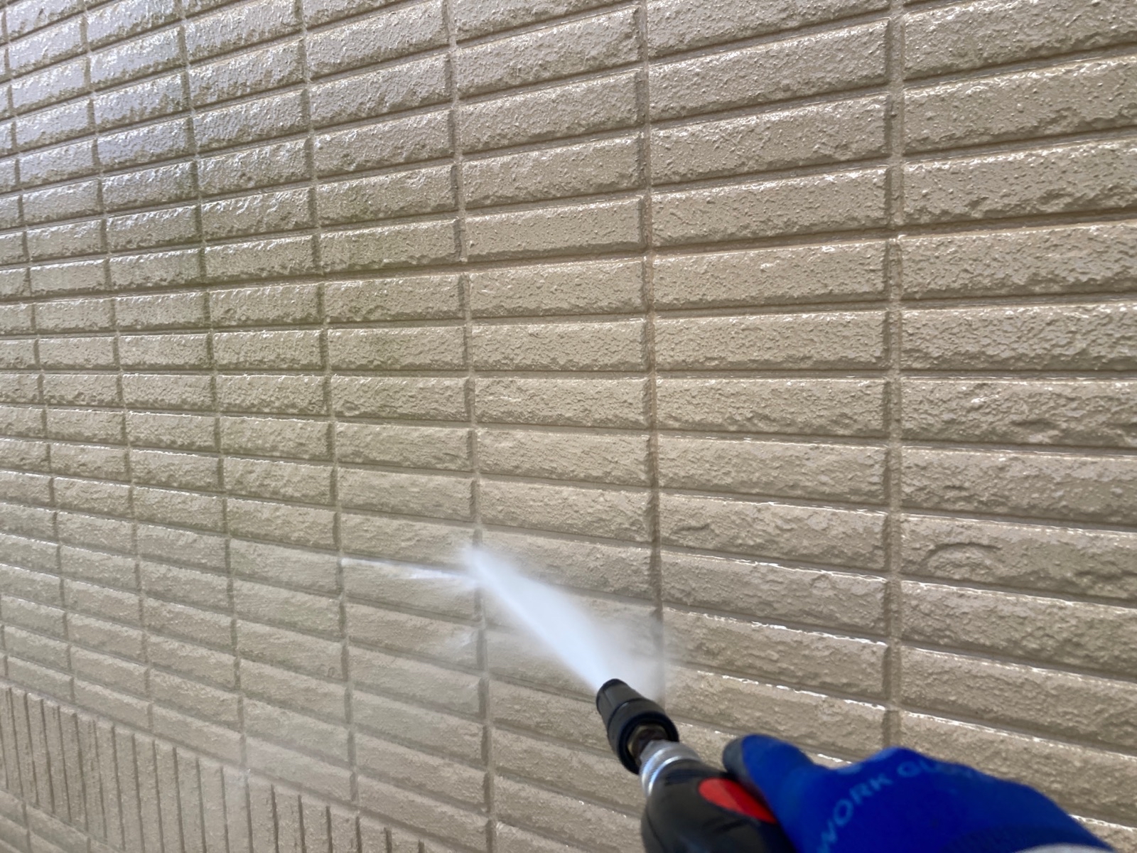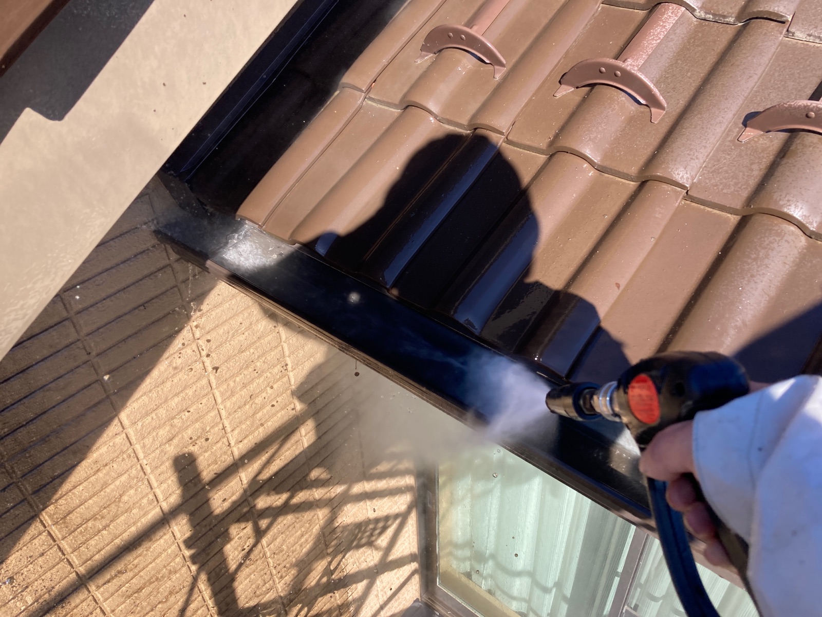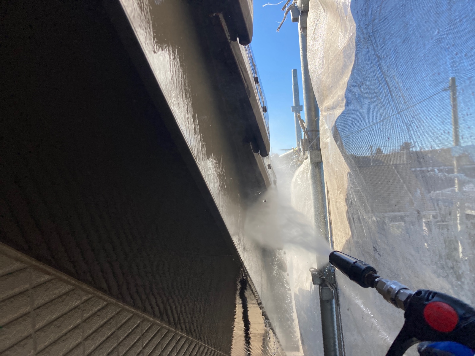 塗料と建材の密着を強くするために外壁や屋根に付着した埃・苔・汚れなどを隅々まで洗浄します。