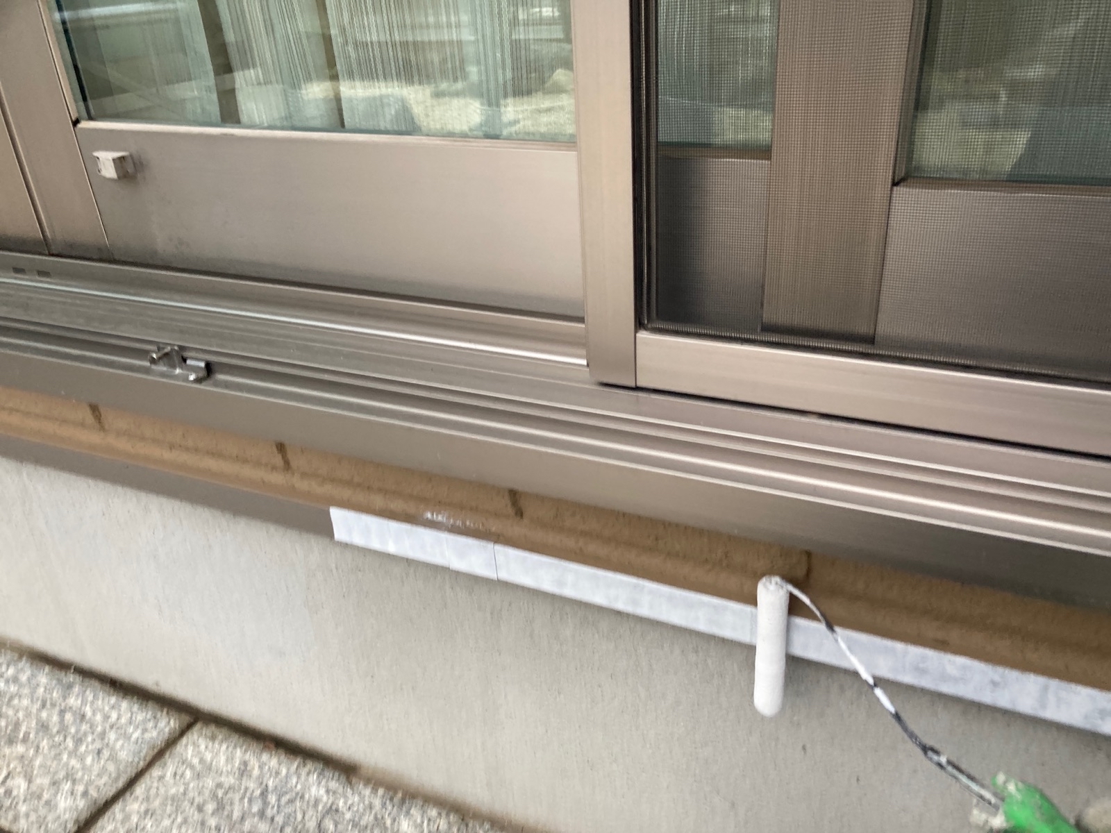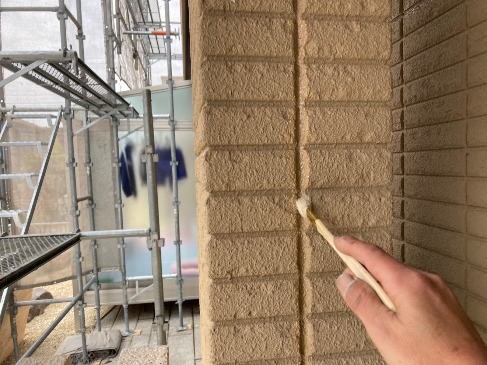 コーキング材の充填。目地内部に空洞ができないように多めに注入していきます。