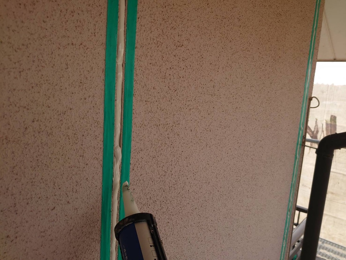 コーキング材の充填。目地内部に空洞ができないように多めに注入していきます。