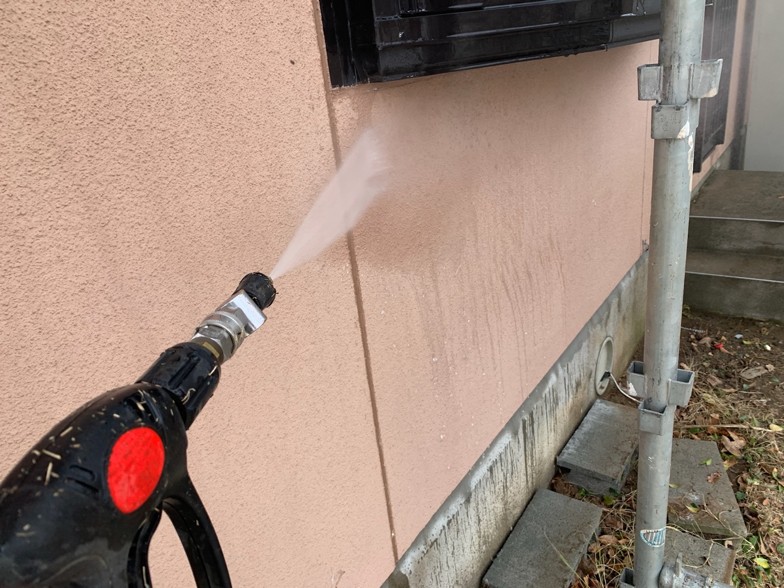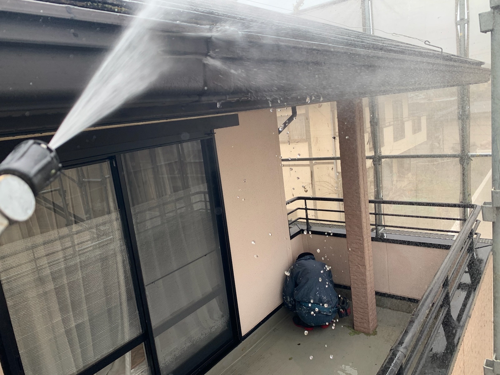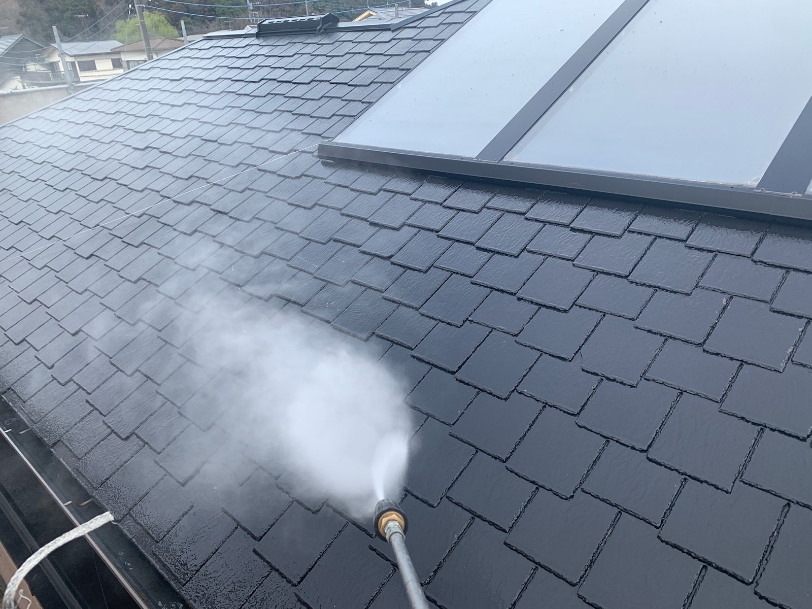塗料と建材の密着を強くするために外壁や屋根に付着した埃・苔・汚れなどを隅々まで洗浄します。