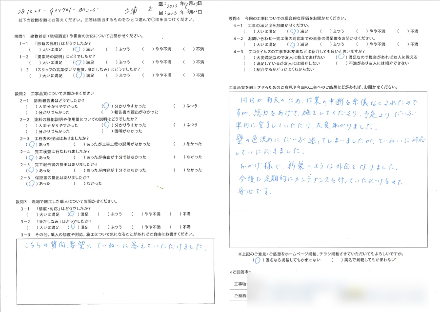 Q.工事品質を向上させるためのご意見や今回の工事へのご感想などがあればお聞かせ下さい。