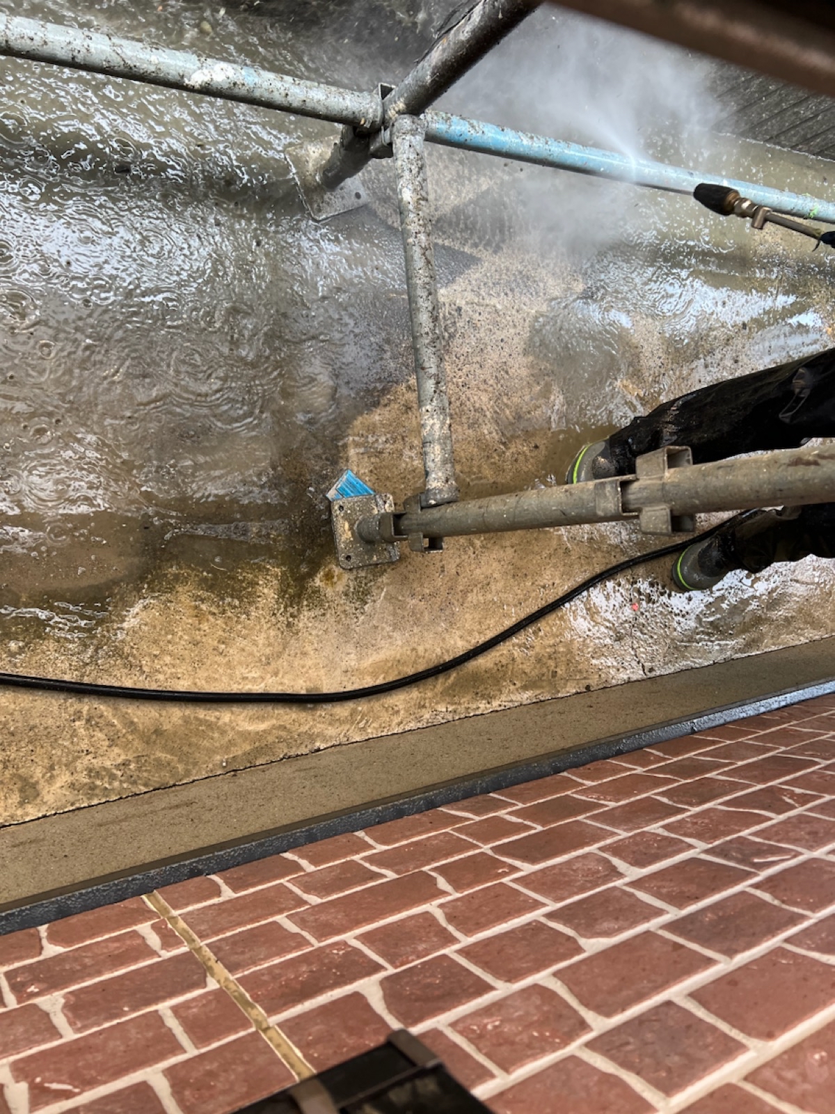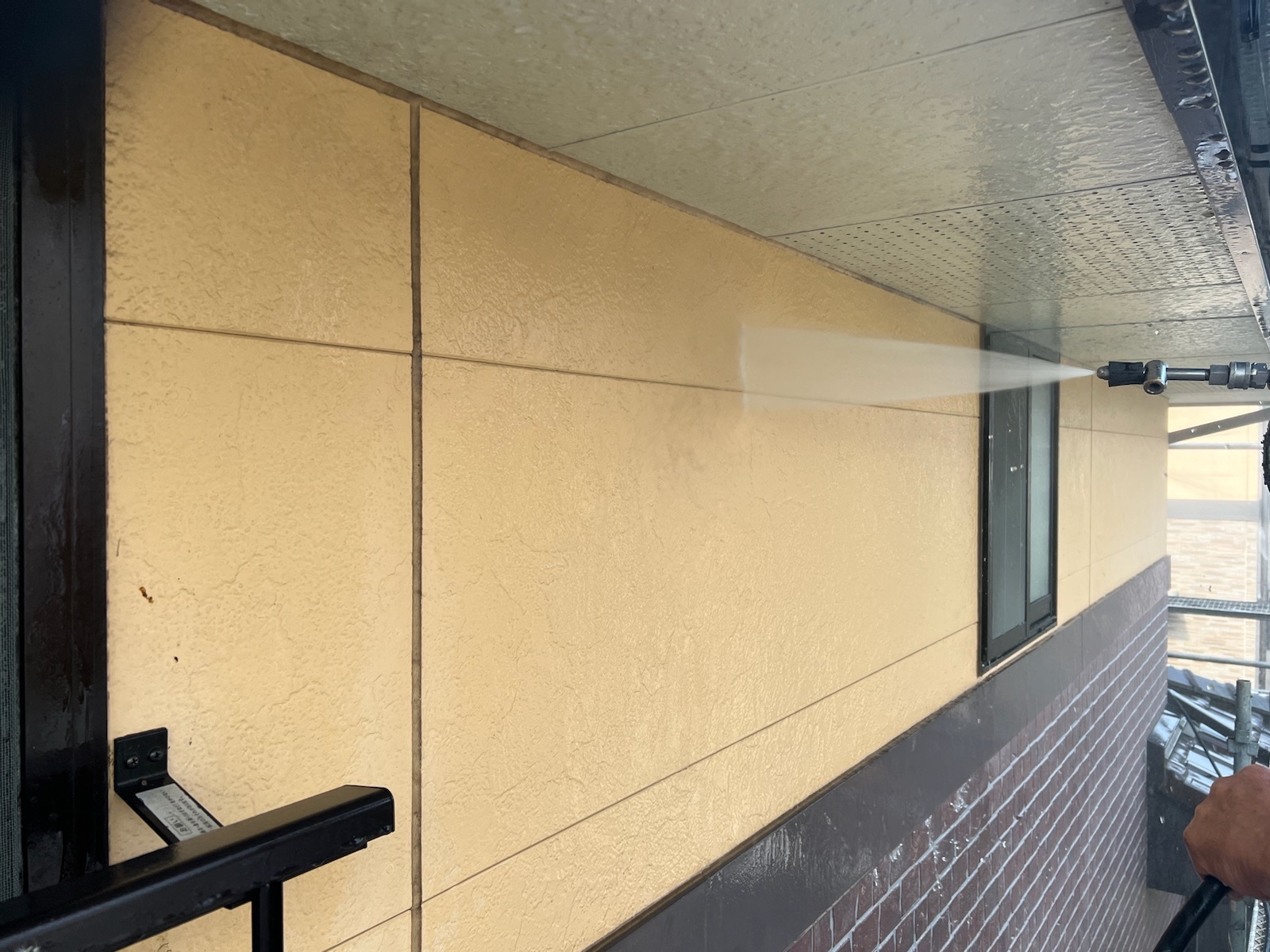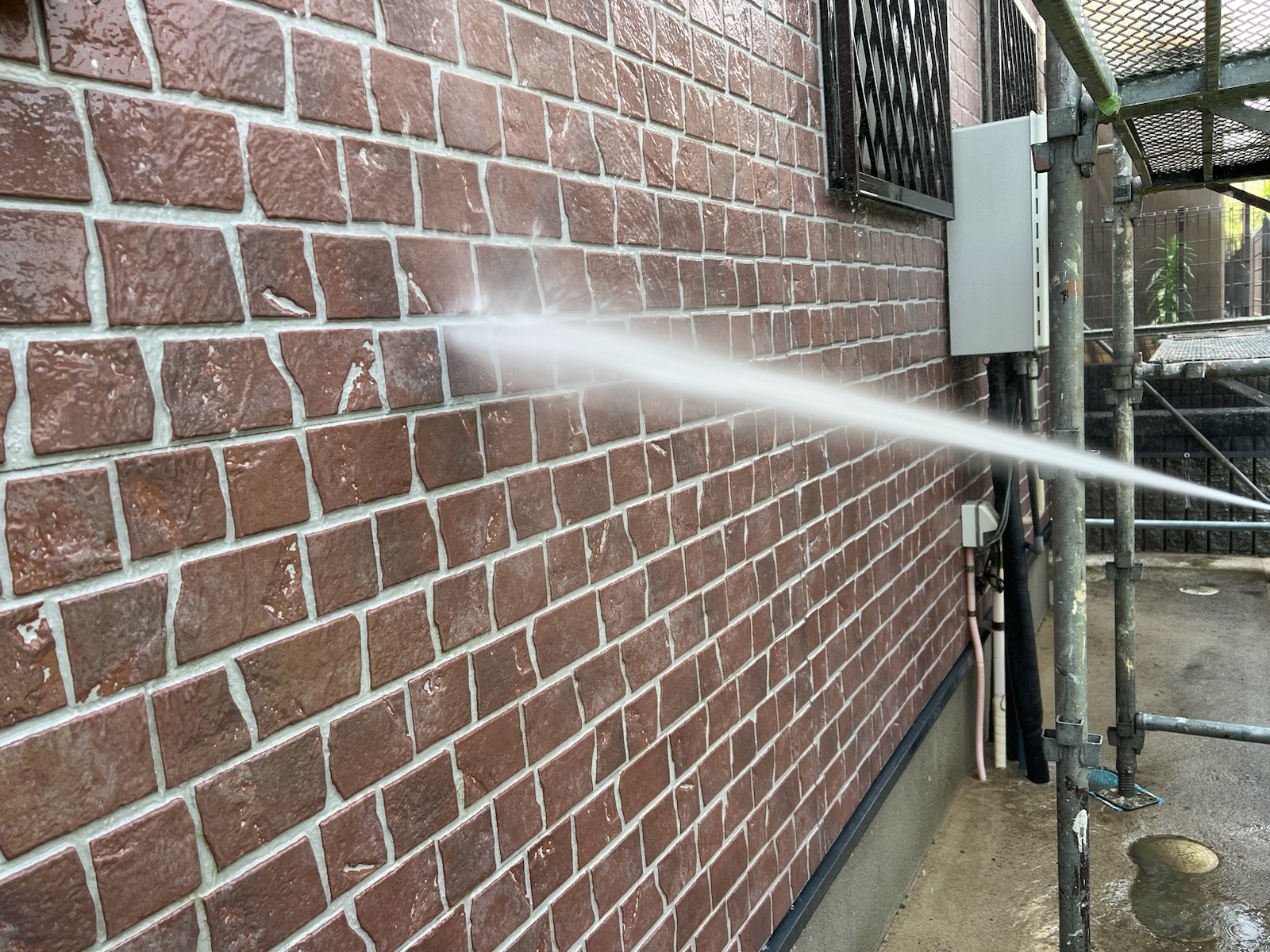 塗料と建材の密着を強くするために外壁や屋根に付着した埃・苔・汚れなどを隅々まで洗浄します。