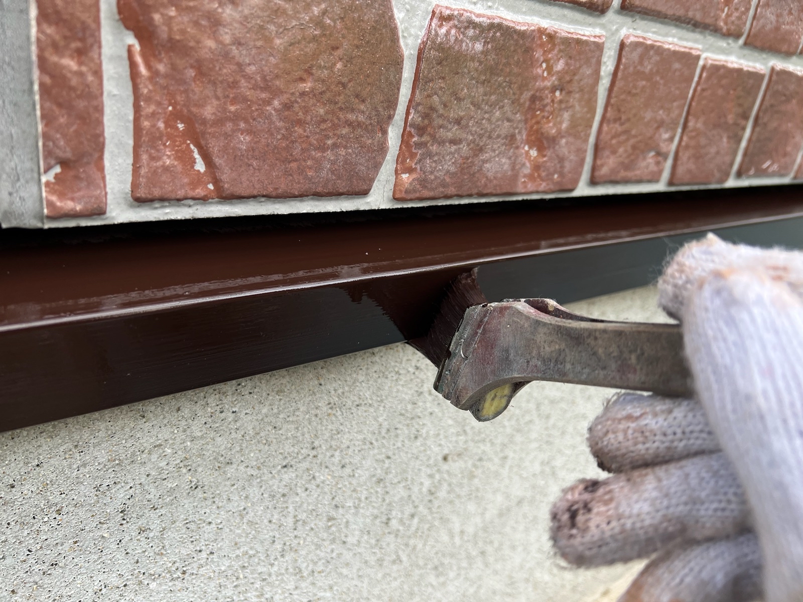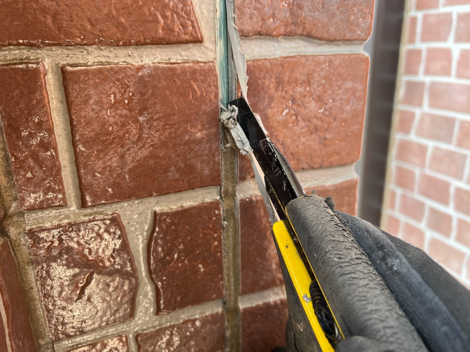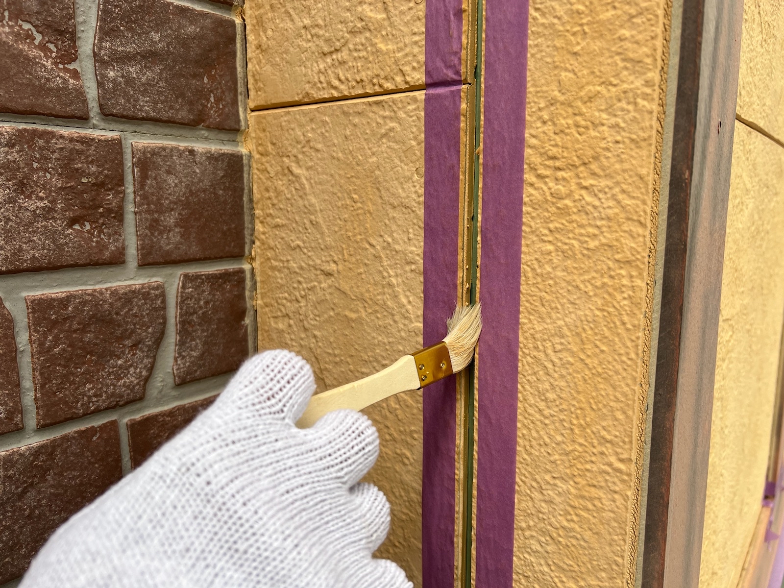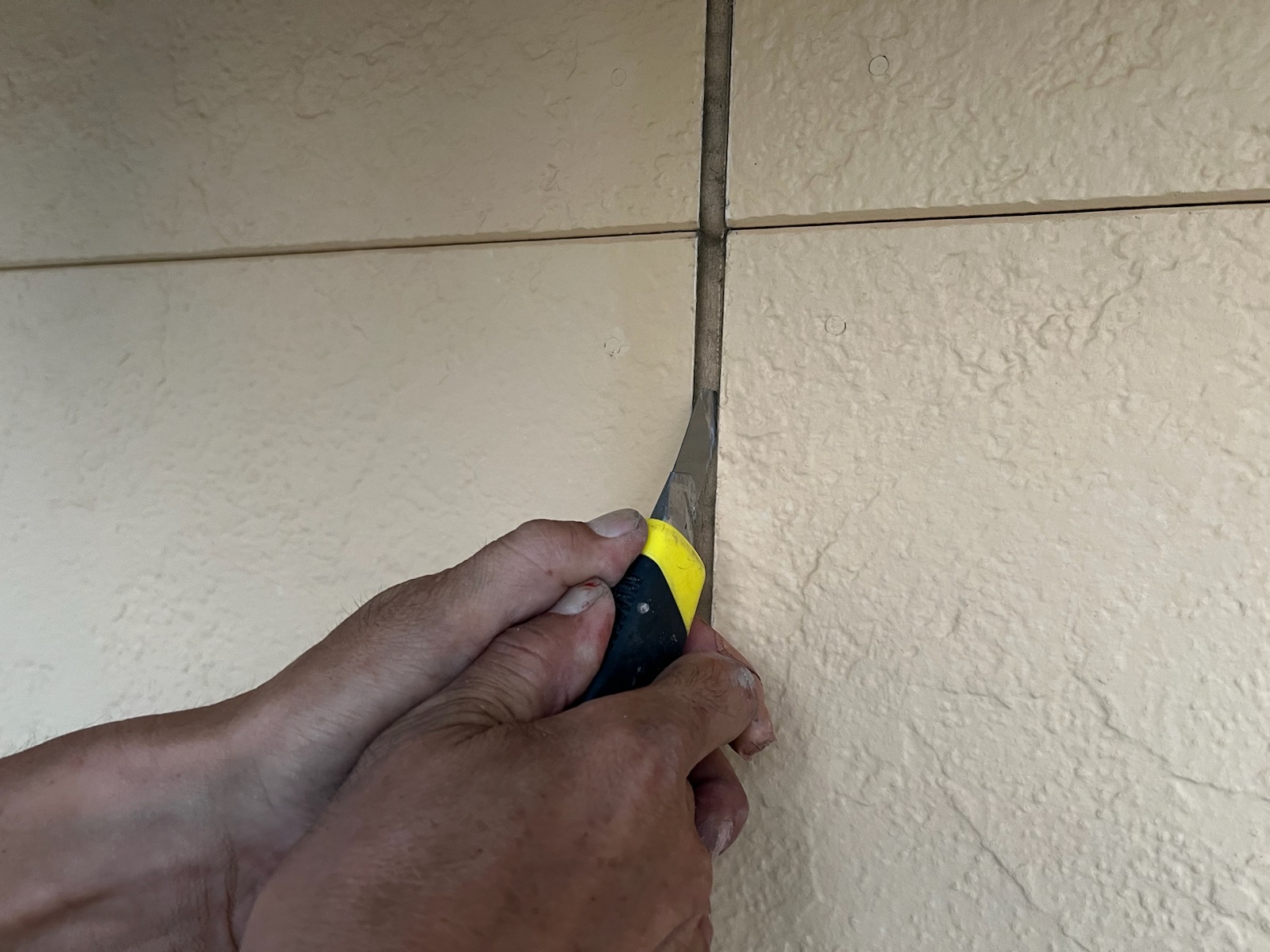 コーキング撤去後は、目地に残った埃をハケを使って綺麗にとります。