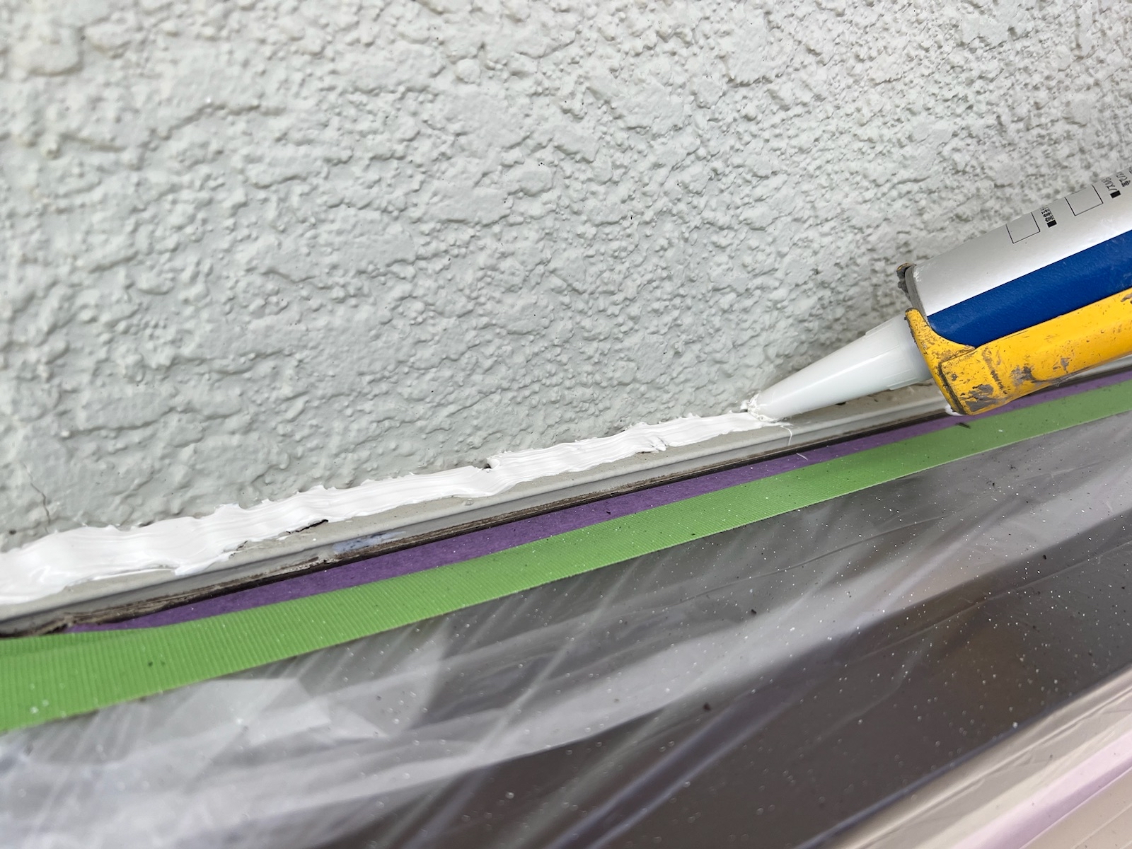 コーキング材の充填。目地内部に空洞ができないように多めに注入していきます。