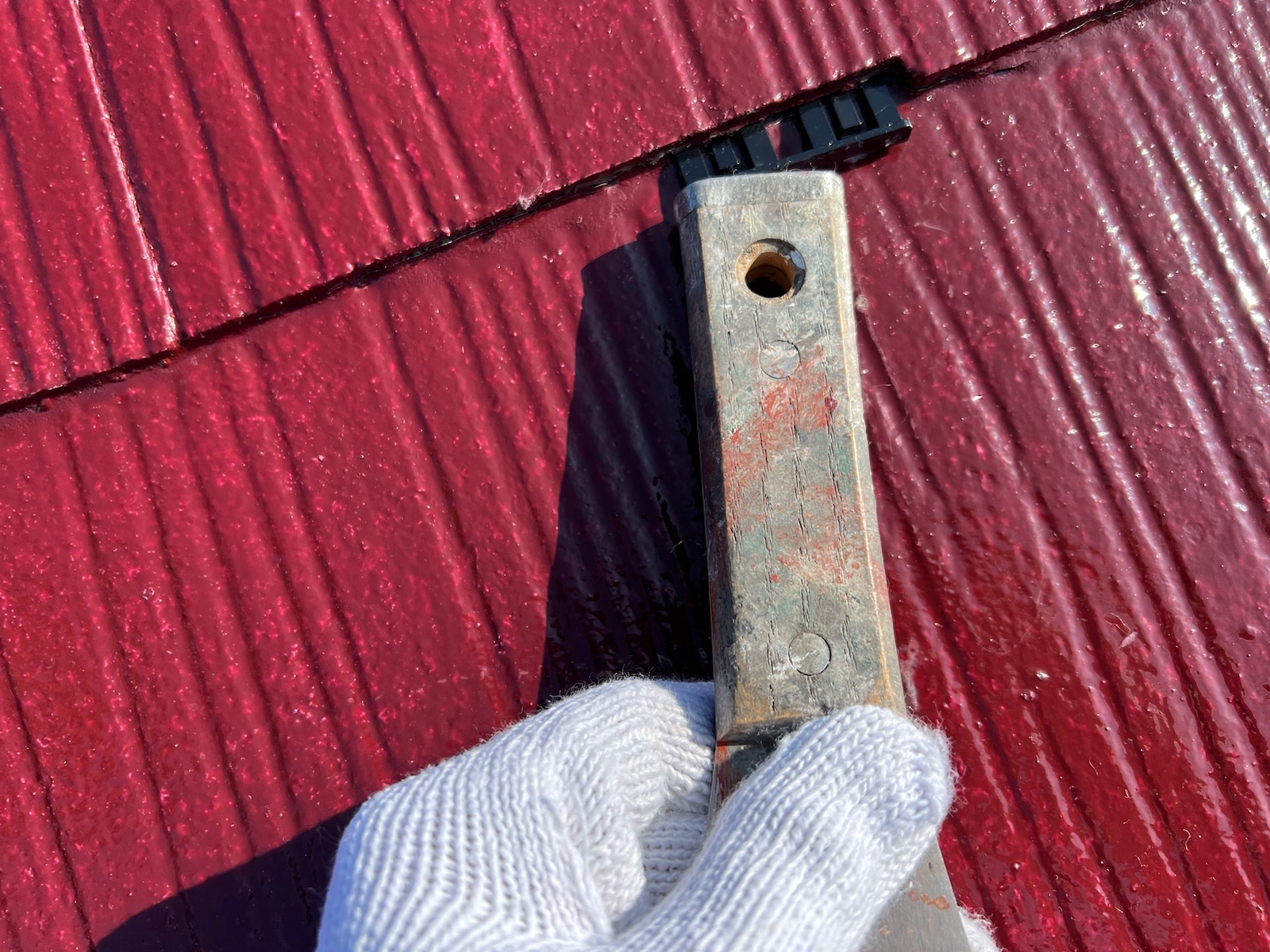 タスペーサー取付け。屋根材同士がくっつくのを防ぐ縁切りをタスペーサーで行います。