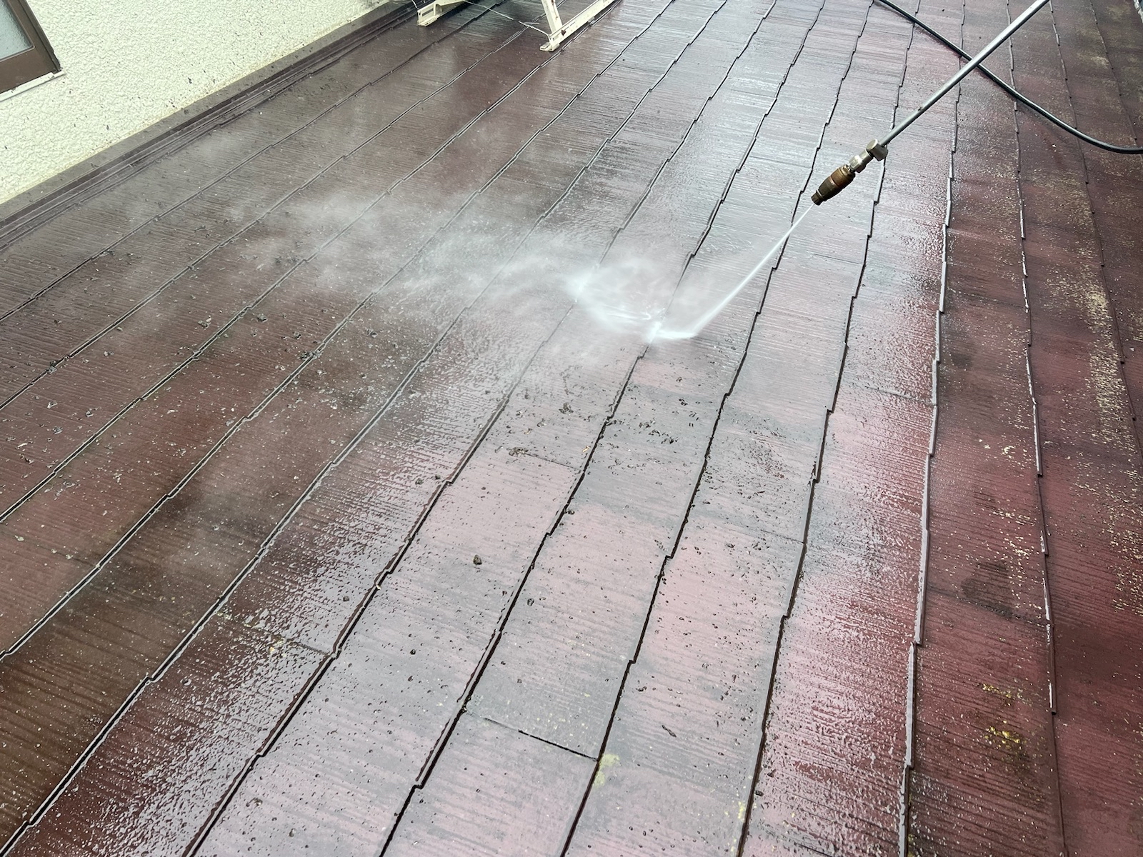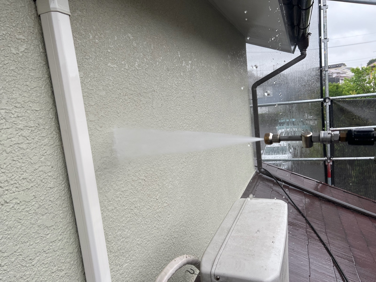古い塗膜や塗装面に付着している汚れ・埃・苔・藻・カビなどを洗い流します。