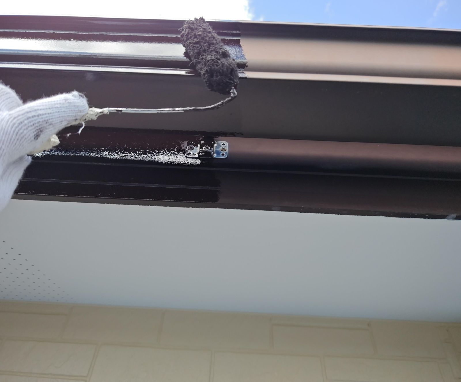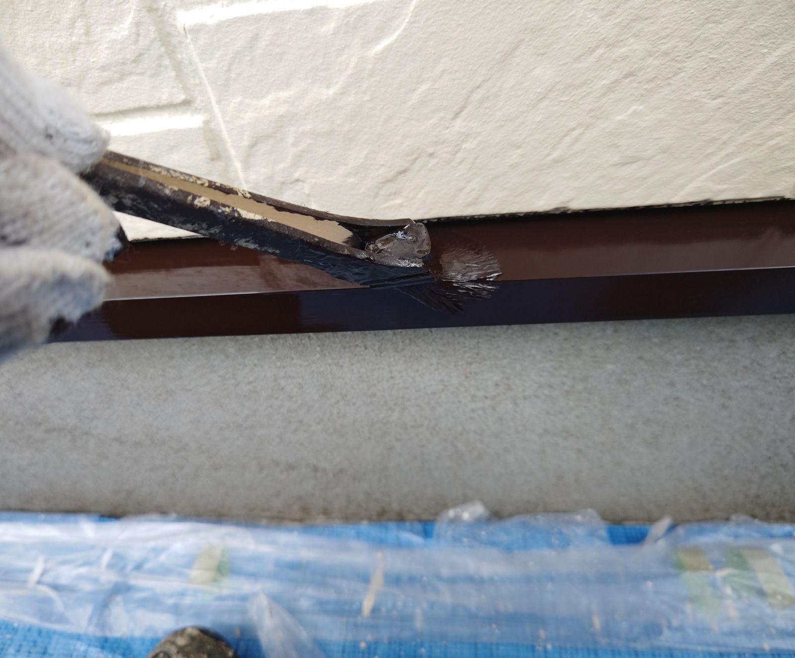 コーキング撤去後は、目地に残った埃をハケを使って綺麗にとります。
