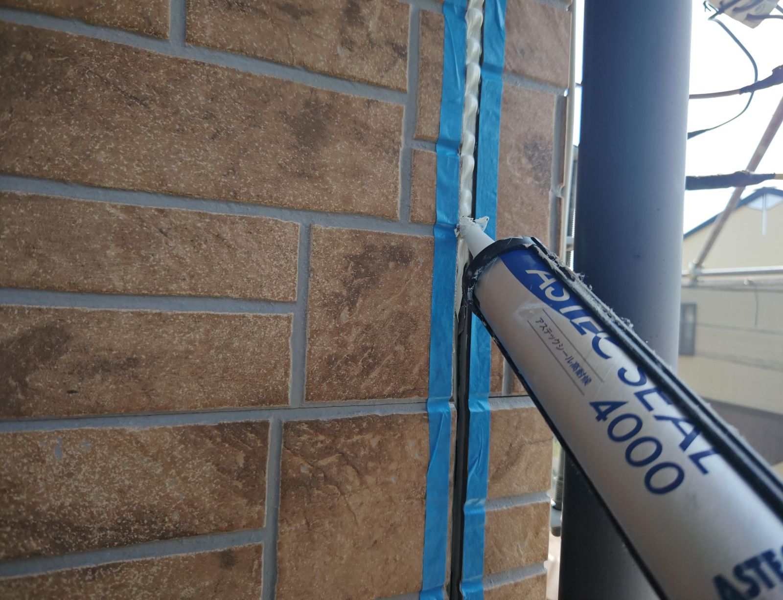 コーキング材の充填。目地内部に空洞ができないように多めに注入していきます。