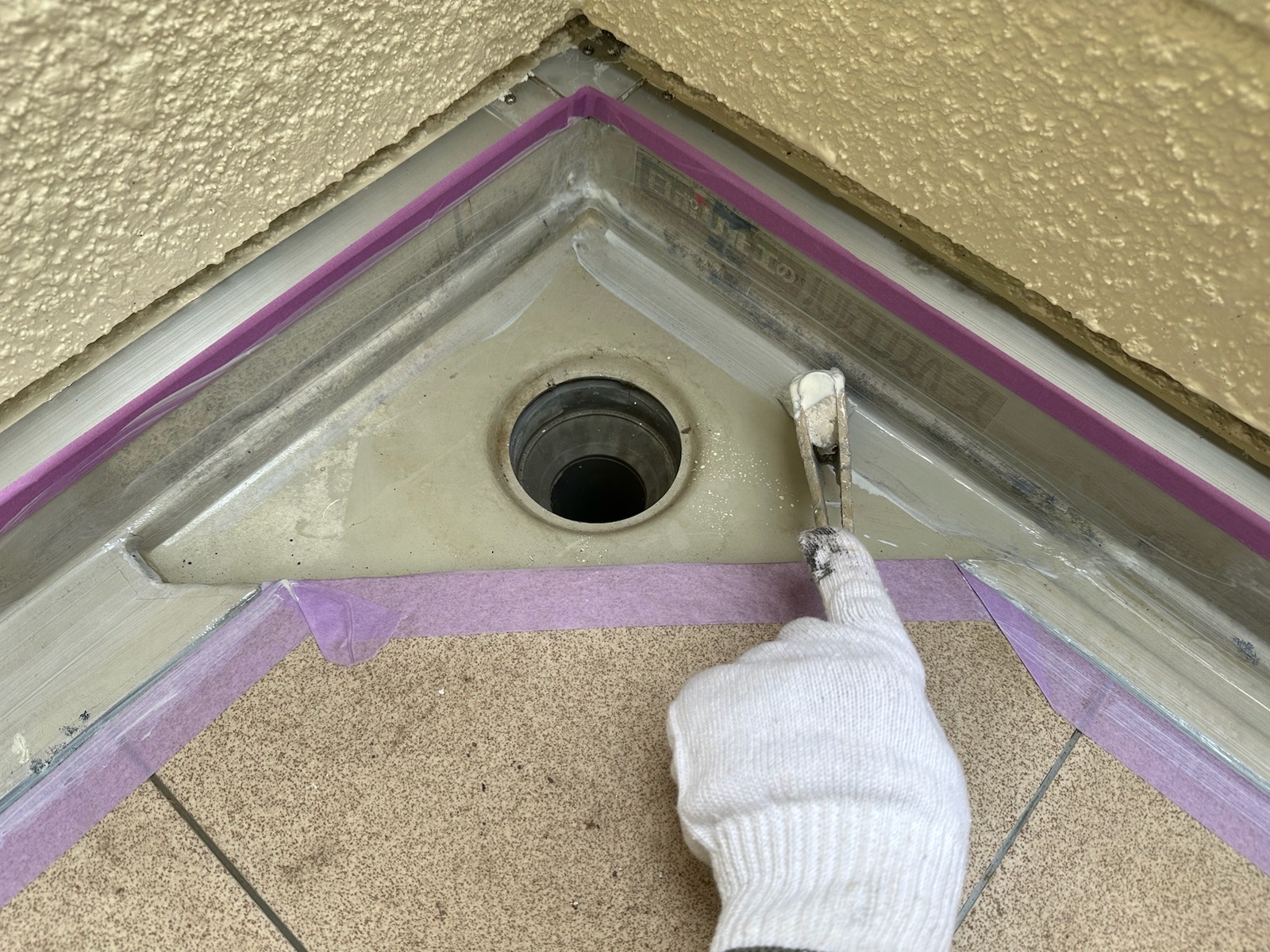 コーキング撤去後は、目地に残った埃をハケを使って綺麗にとります。