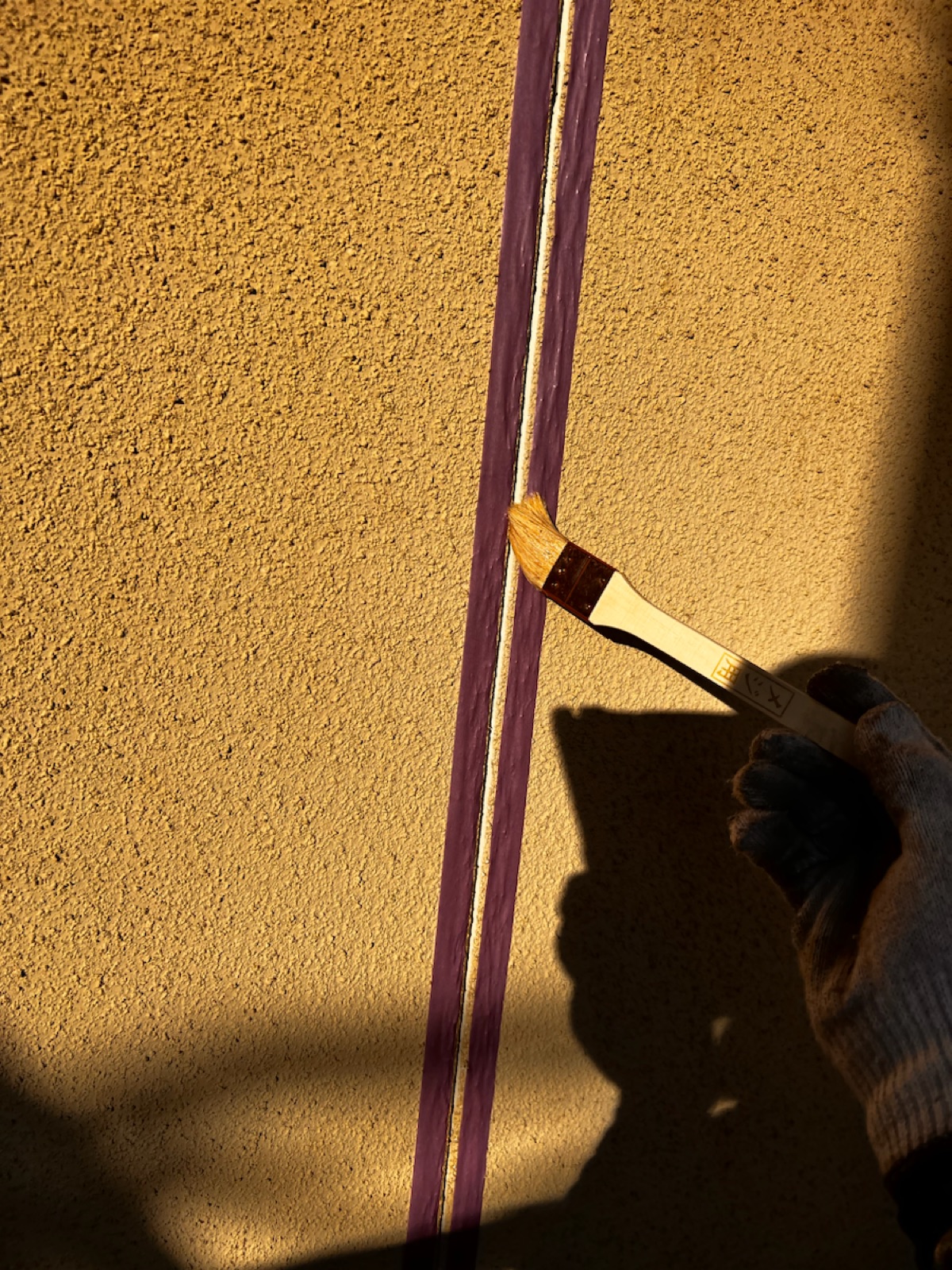 コーキング撤去後は、目地に残った埃をハケを使って綺麗にとります。