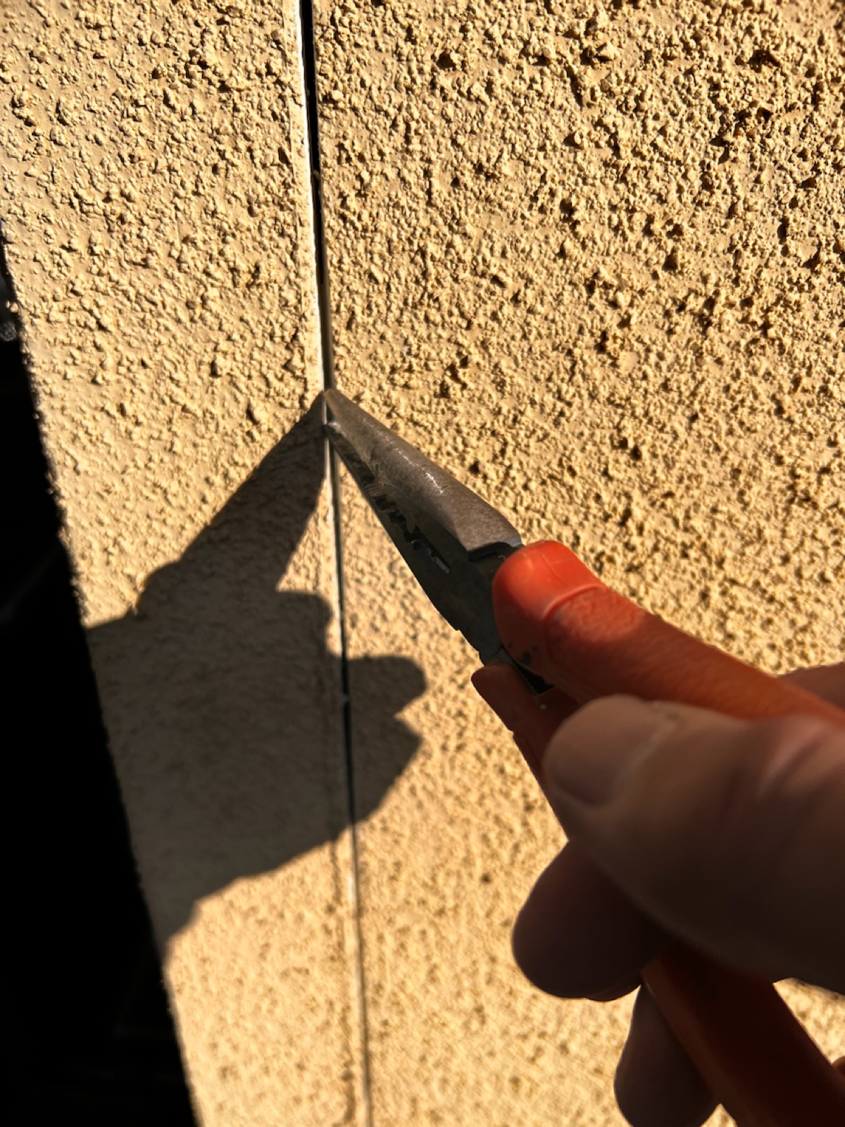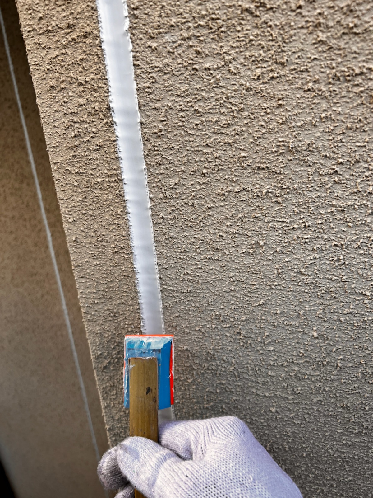 コーキング材の充填。目地内部に空洞ができないように多めに注入していきます。