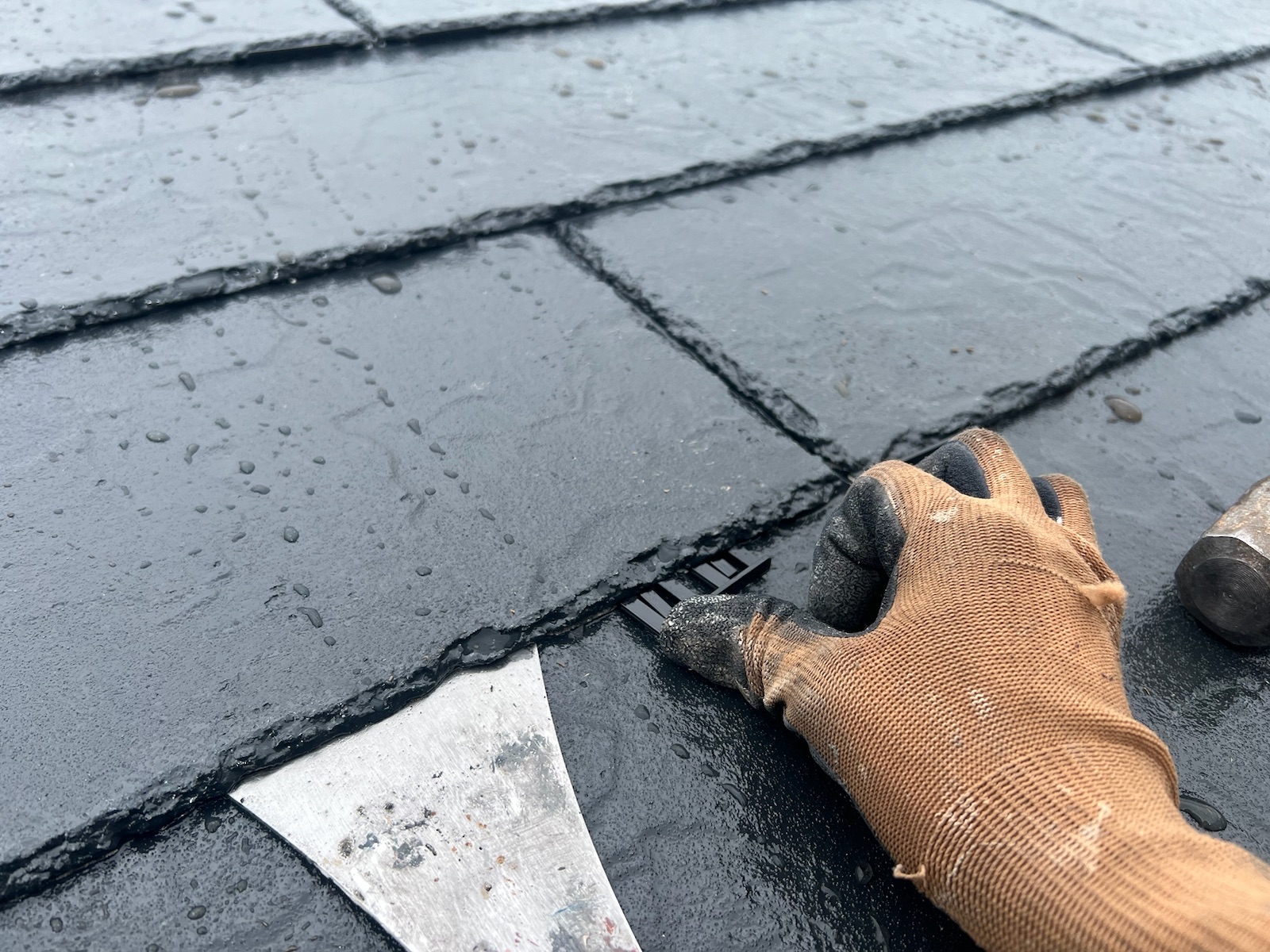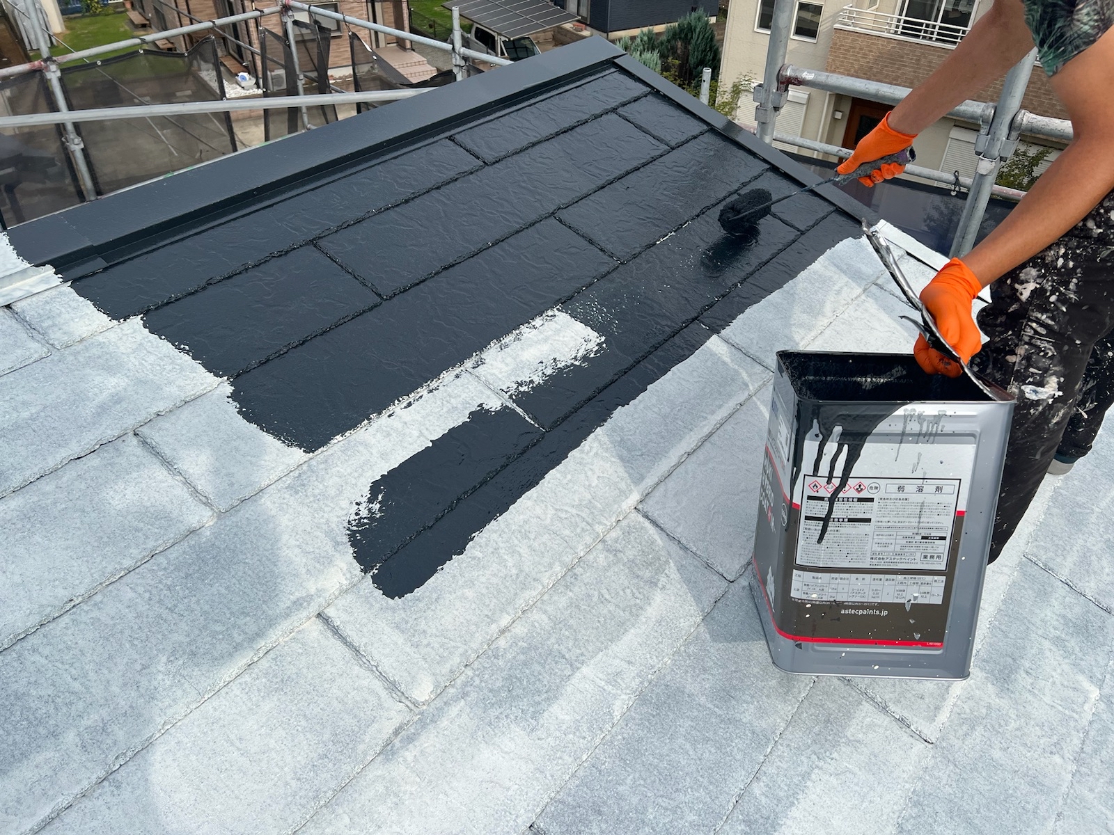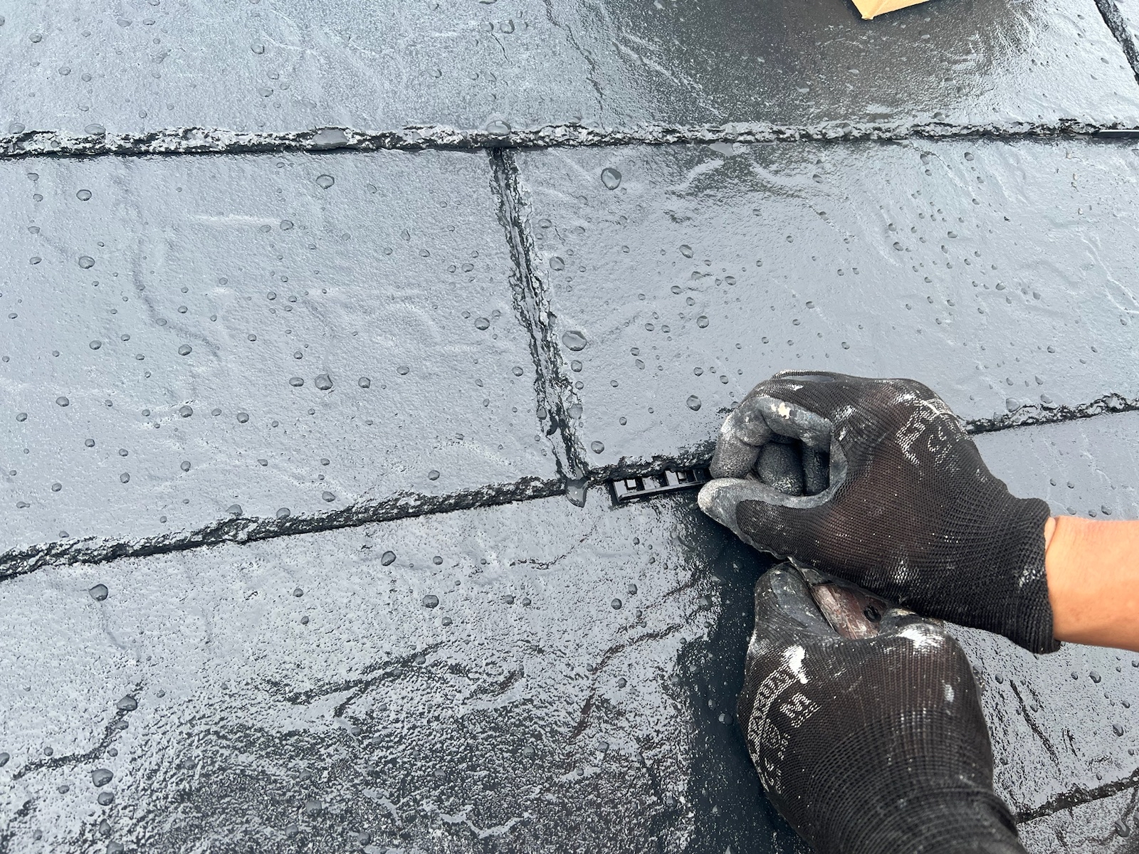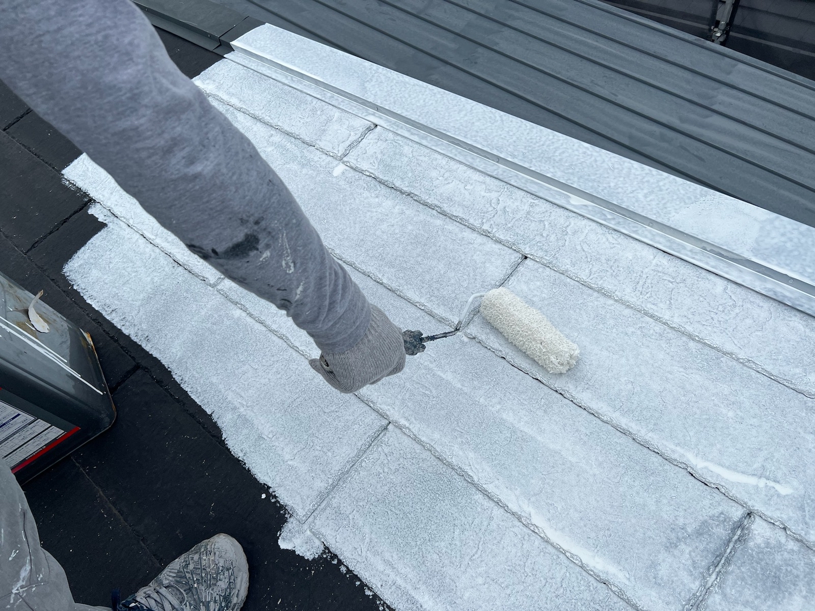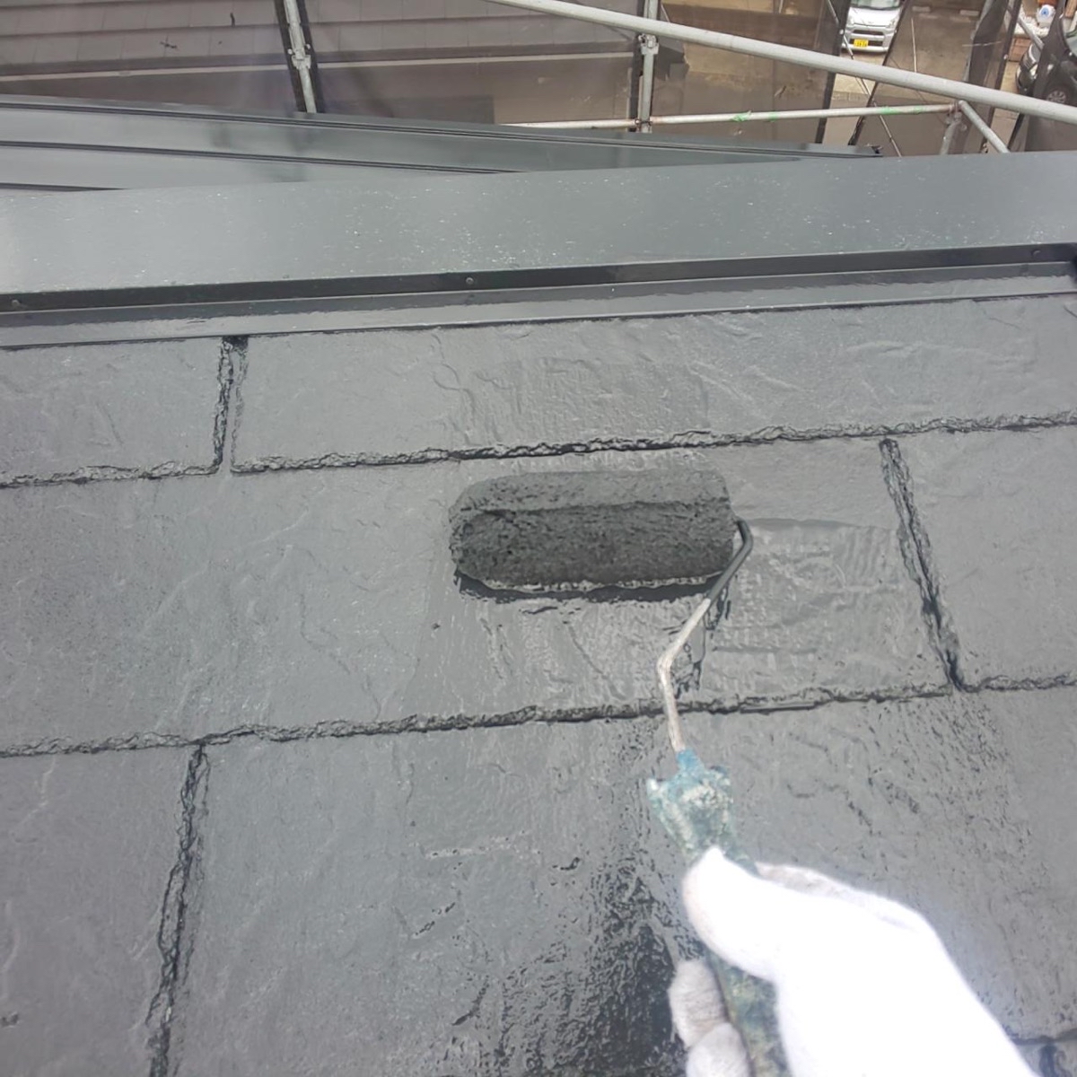 この作業をしないと、屋根の縁が塗料でくっついて、屋根に降った雨水が正常に流れていかず内部に留まり、雨漏りする可能性があります。