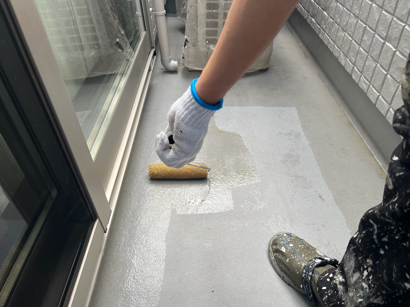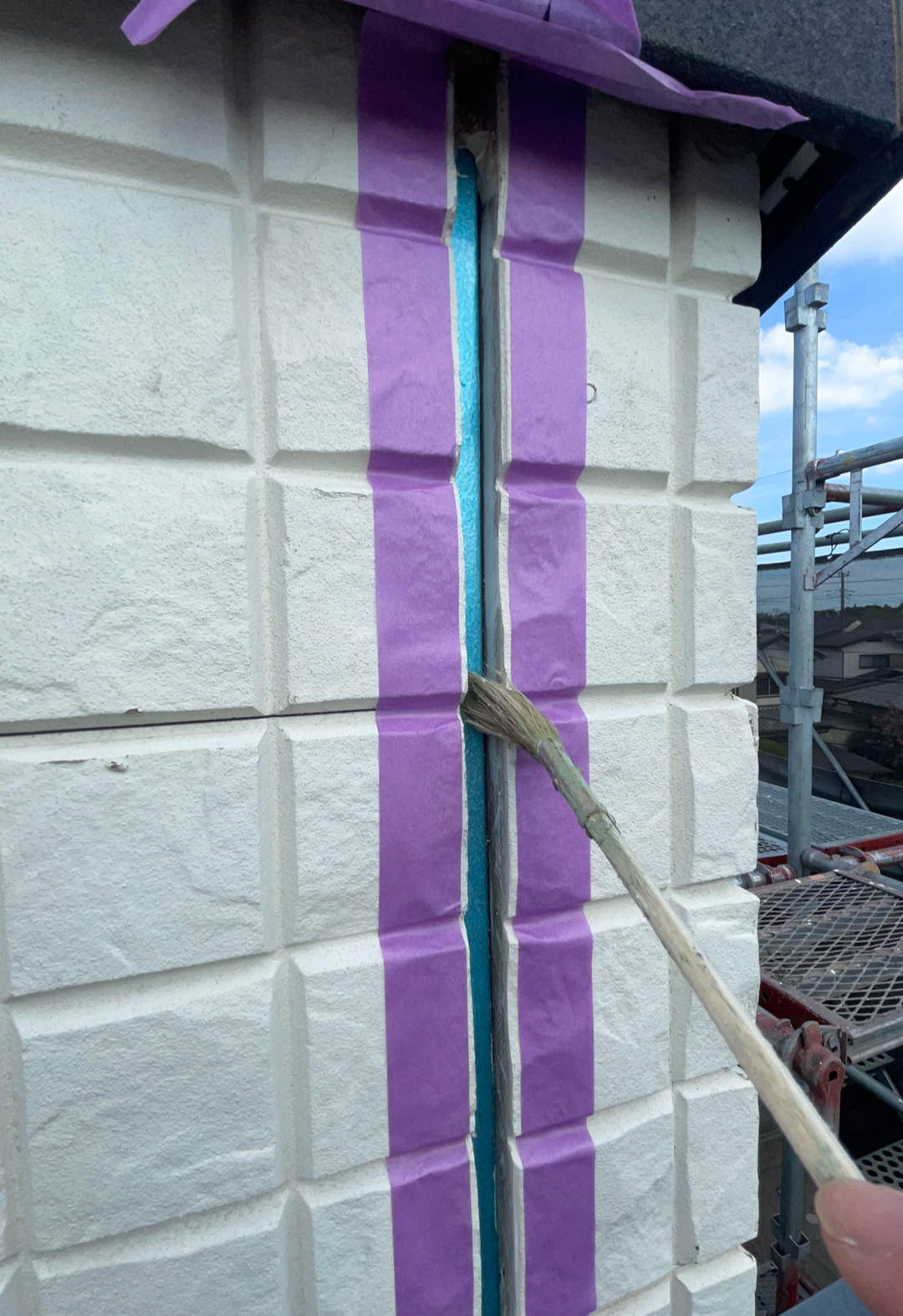 目地の汚れを除去後、プライマーを塗布します。