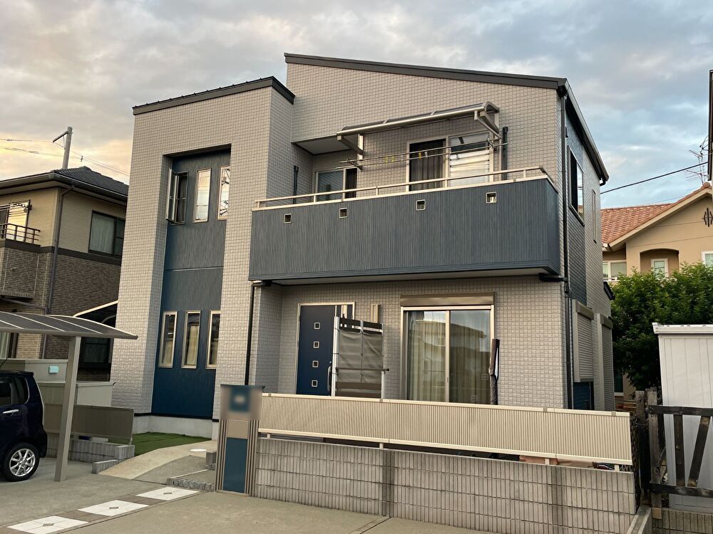 上塗り(バーチグレー)業界最高水準の外壁の美観を保持する超低汚染無機フッ素塗料「超低汚染プラチナリファイン2000MF-IR」で施工しました。