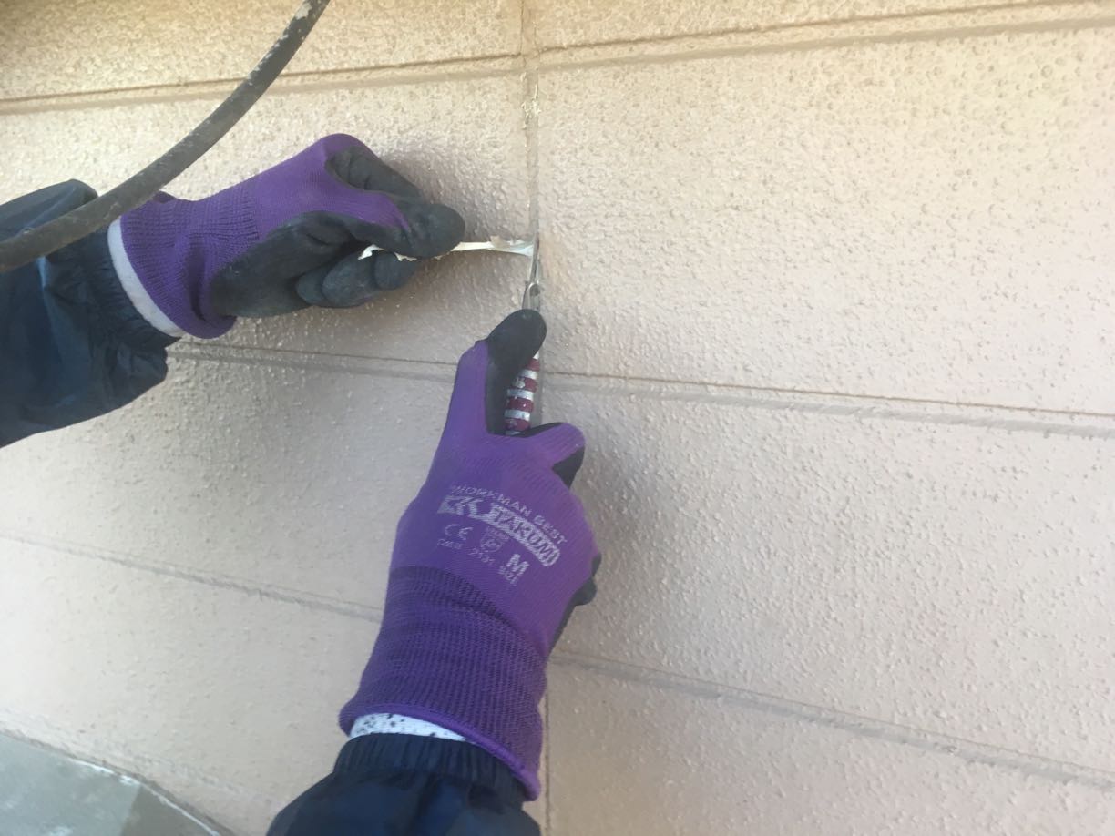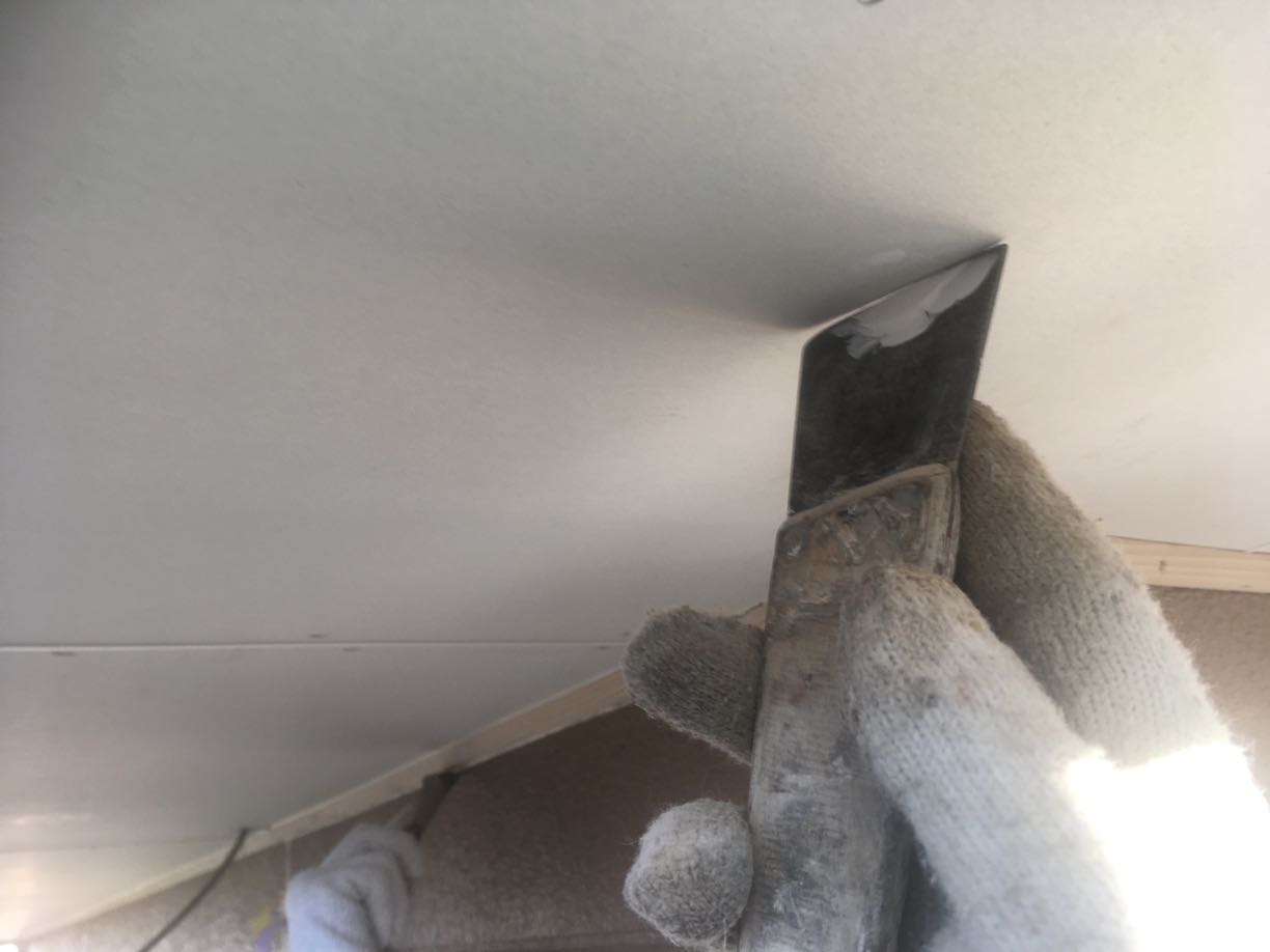去年9月の台風15号の大雨により、壁からの漏水で室内が水びたしとなってしまいましたが、今回の塗装工事でその原因が判明しました。エアコン設置時の配管ダクト外壁部分のコーキング処理がされていなかったのです。見つけていただきました。工事職人のナカガワさんには大変感謝しております。