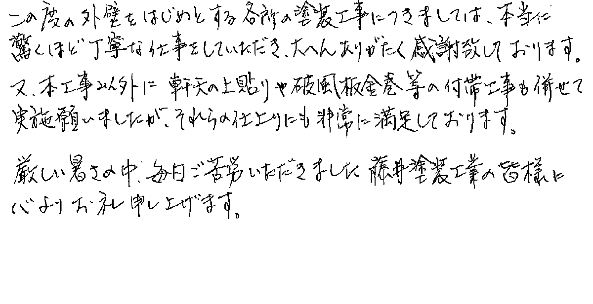 藤井塗装工業の皆様に心よりお礼申し上げます。