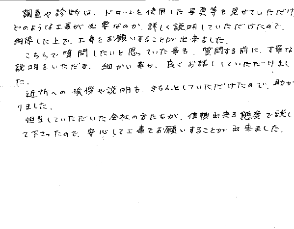 近所への挨拶や説明も、きちんとしていただけたので、助か