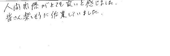 人間関係がとても良いと感じました。
