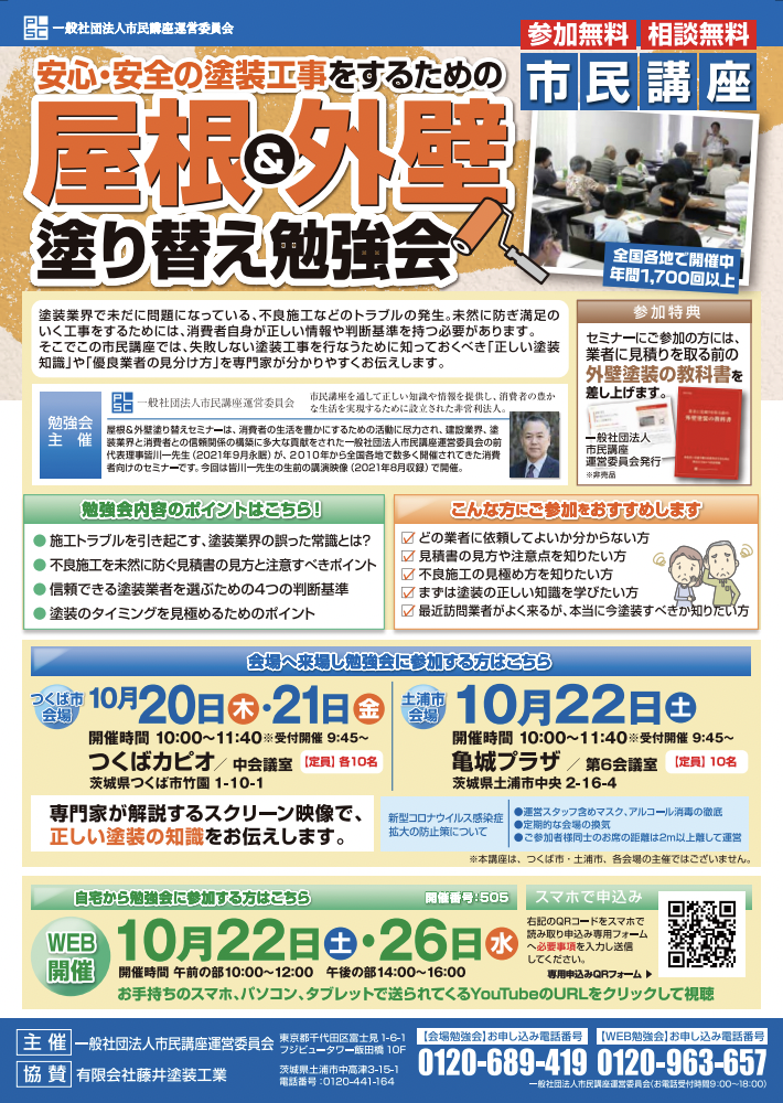 HOME 記事カテゴリー イベント イベント 2024.09.25 イベント 【土浦市】【つくば市】【阿見町】10月開催の塗り替え勉強会(PQA)のお知らせ✐ 2024.09.11 イベント 【土浦市】【つくば市】【阿見町】9月開催の塗り替え勉強会(PQA)のお知らせ✐ 2024.01.25 イベント 【土浦市】【つくば市】3月開催の屋根・外壁塗り替えセミナーのお知らせ✐ 2022.10.06 イベント 【土浦市】【つくば市】10月開催の屋根・外壁塗り替えセミナーのお知らせ✐