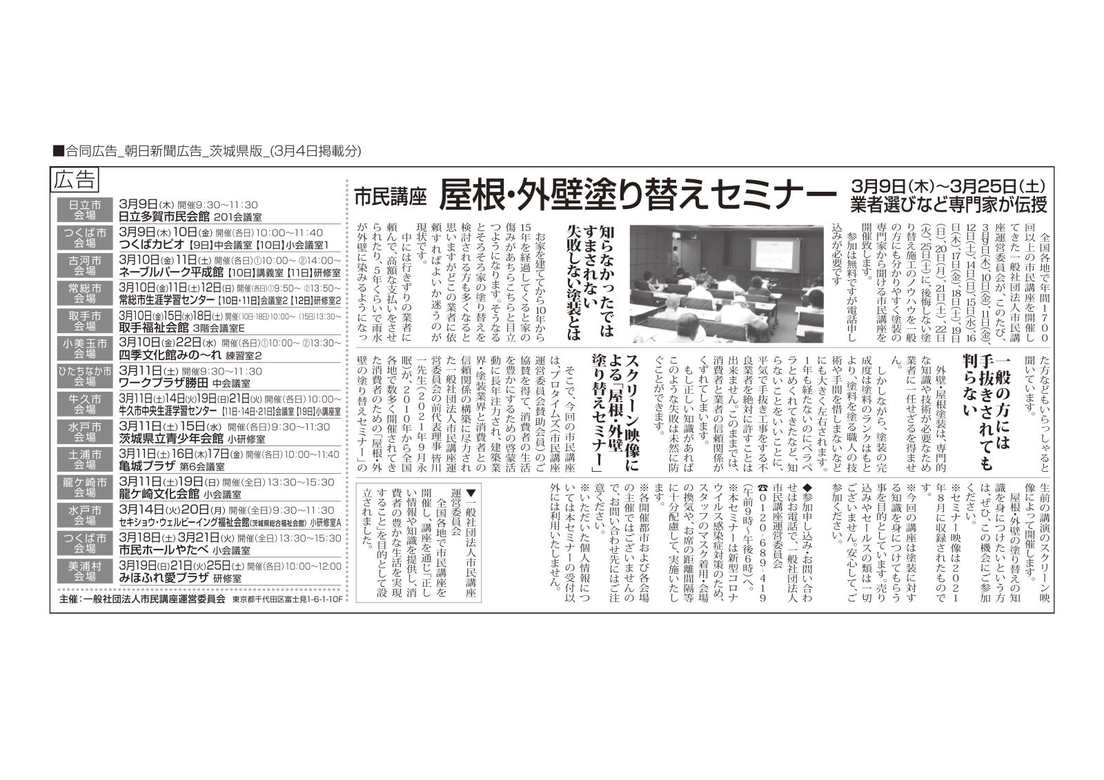 【土浦市】【つくば市】3月開催の屋根・外壁塗り替えセミナーのお知らせ✐