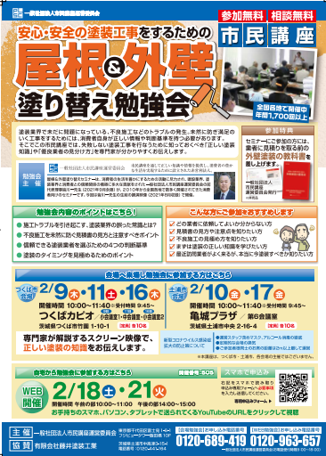 【土浦市】【つくば市】2月開催の屋根・外壁塗り替えセミナーのお知らせ✐