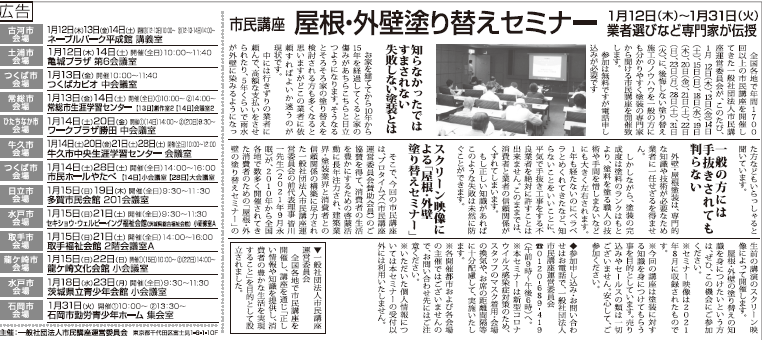 【土浦市】【つくば市】1月開催の屋根・外壁塗り替えセミナーのお知らせ✐