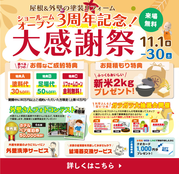 【土浦市】【つくば市】【阿見町】ショールームオープン3周年記念!大感謝祭