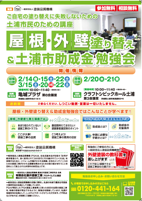 【土浦市】2月3月開催 塗り替え&助成金勉強会のお知らせ✍