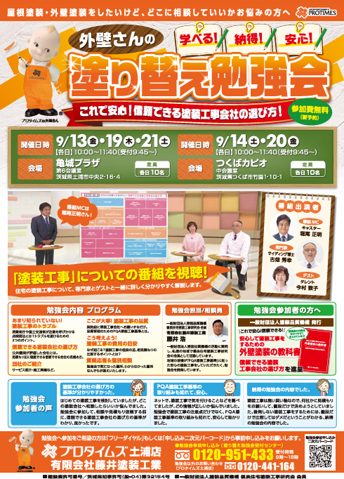 【土浦市】【つくば市】【阿見町】9月開催の塗り替え勉強会(PQA)のお知らせ✐