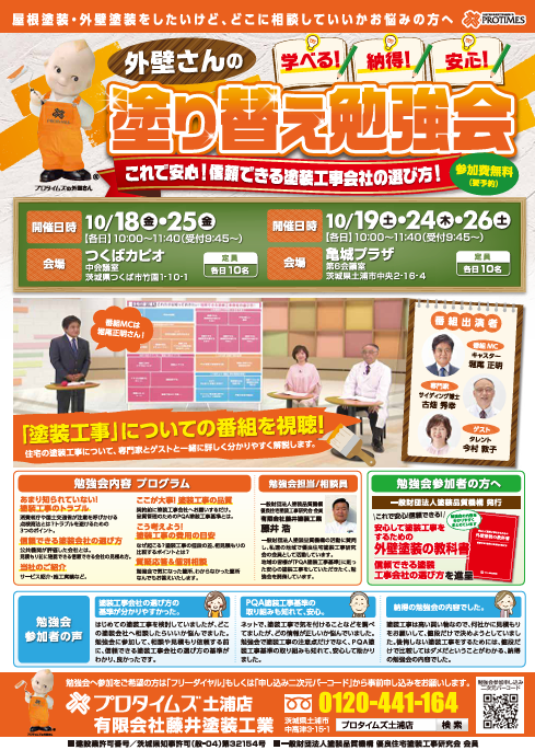【土浦市】【つくば市】【阿見町】10月開催の塗り替え勉強会(PQA)のお知らせ✐