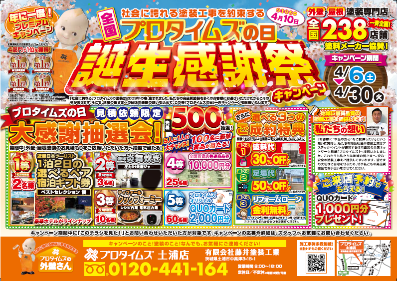 【土浦市・つくば市】全国プロタイムズの日~誕生感謝祭~キャンペーン